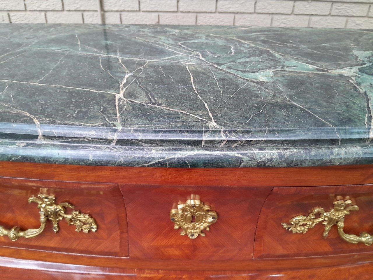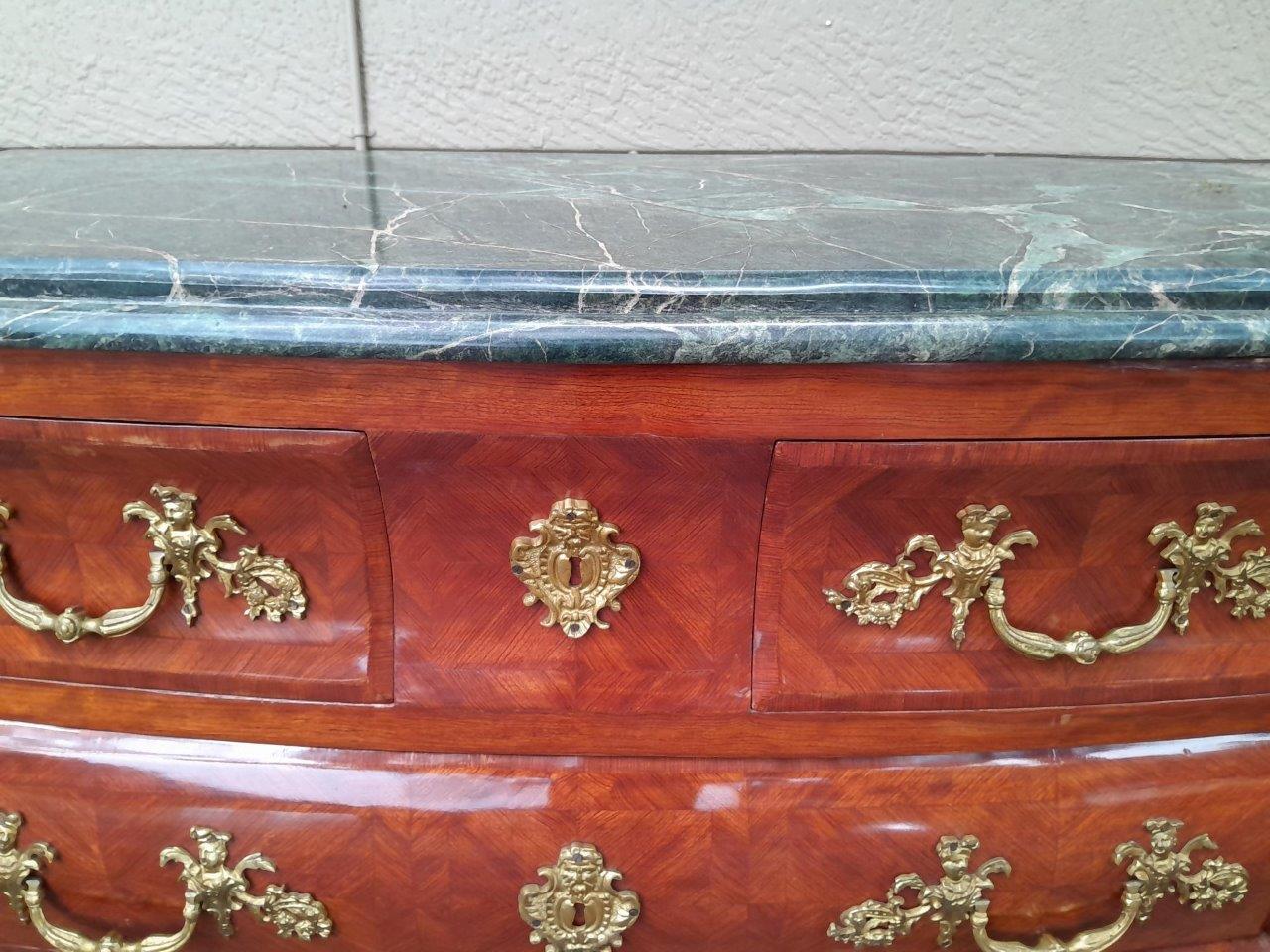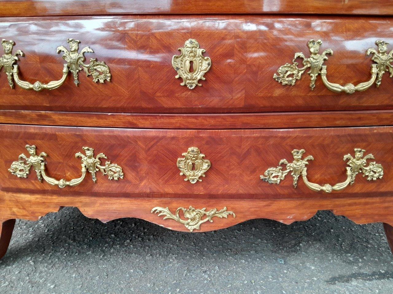 A 20th Century French Rococo Louis XVI Style Walnut Bombe Chest Of Drawers With Gilt Brass Mounts