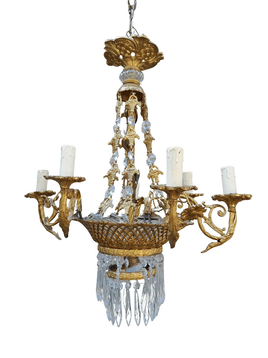 A 20th Century French Style Brass & Aged Crystal Chandelier