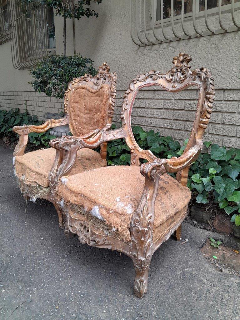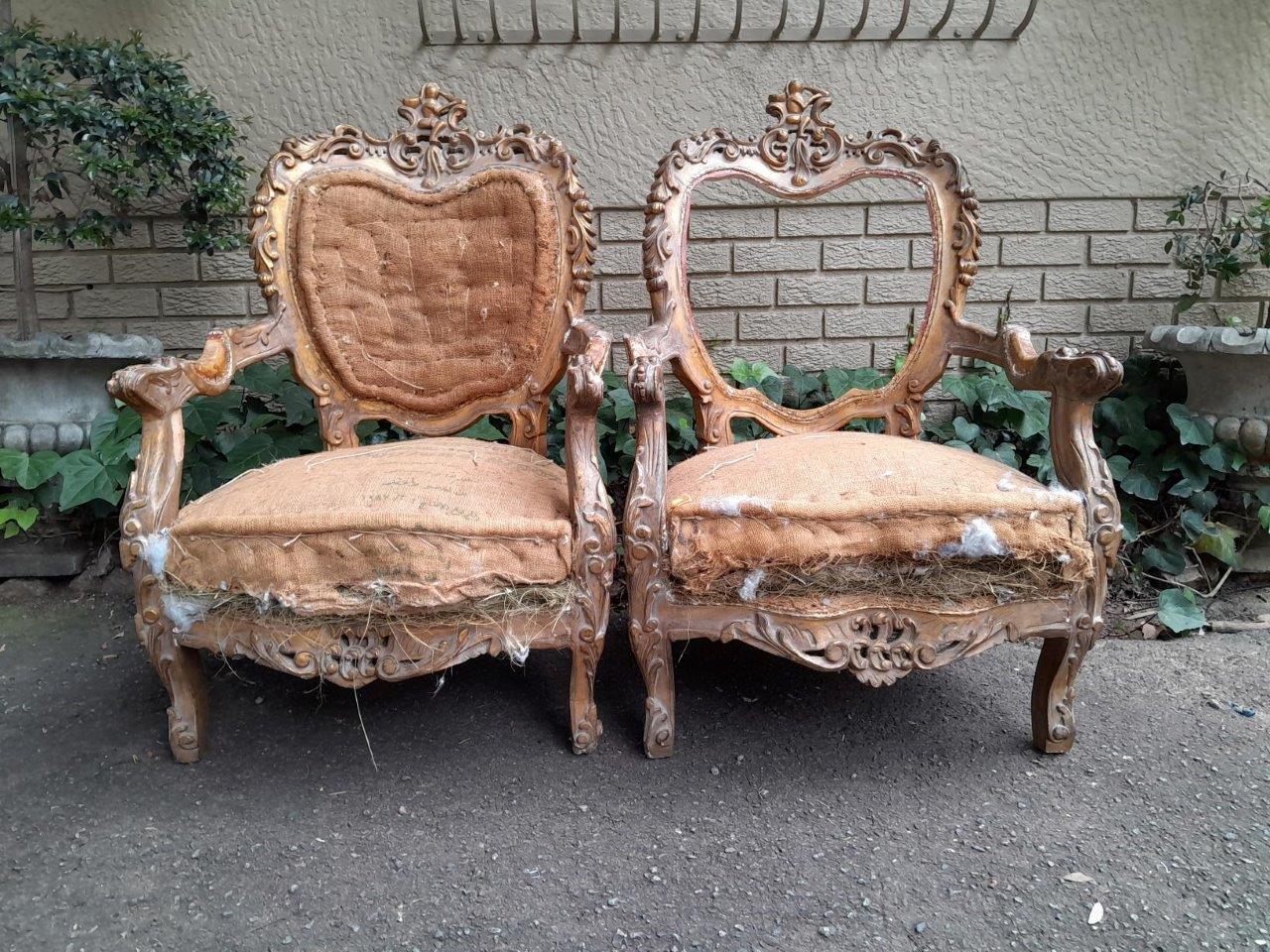 A 20th Century French Style Carved And Gilded Pair Of Arm Chairs (Still To Be Upholstered)