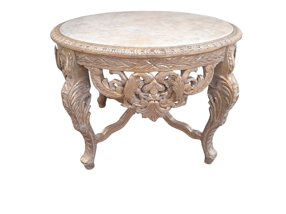 A 20th Century French Style Carved and Hand Gilded Side Table with Marble Top