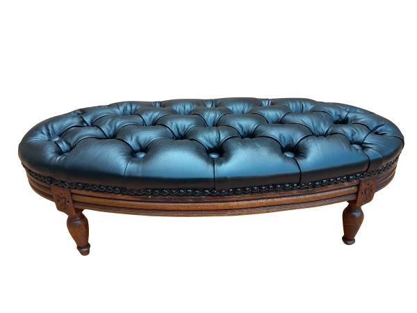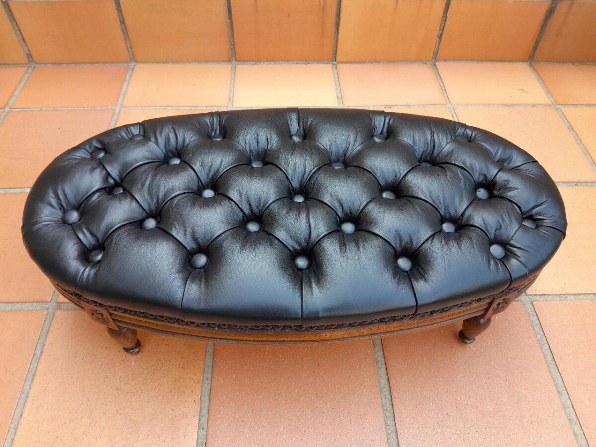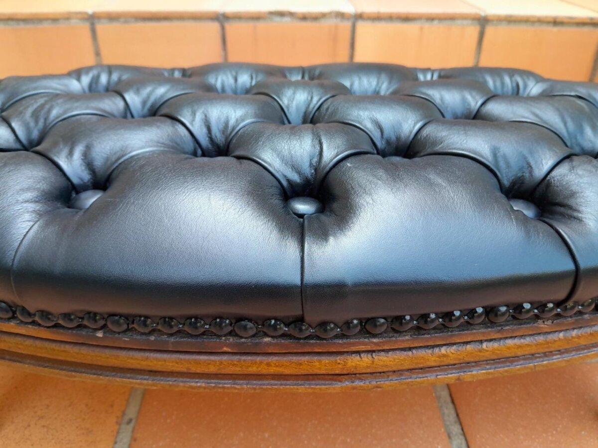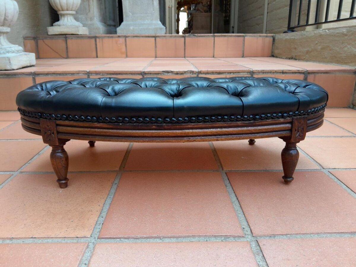 A 20th Century French Style Carved Beechwood Foot Stool Upholstered In Deep Buttoned Leather