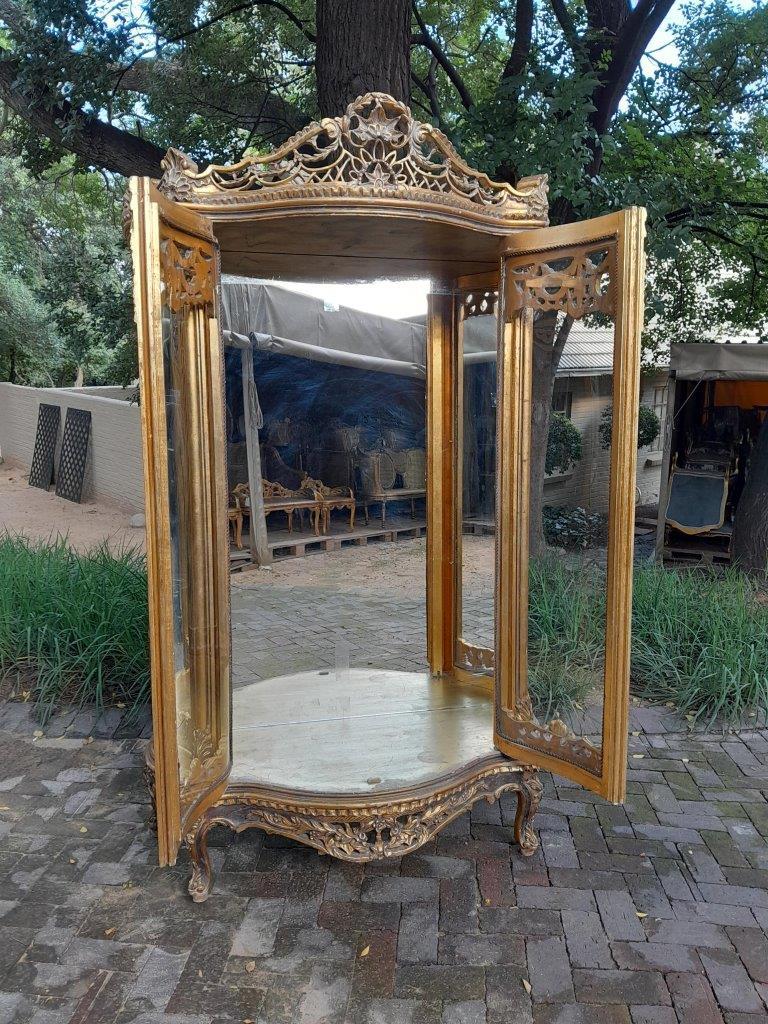 A 20th Century French Style Carved & Gilded Display Cabinet / Vitrine