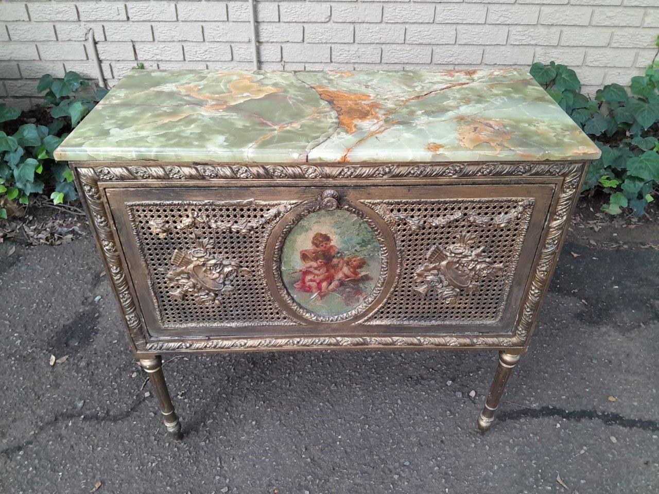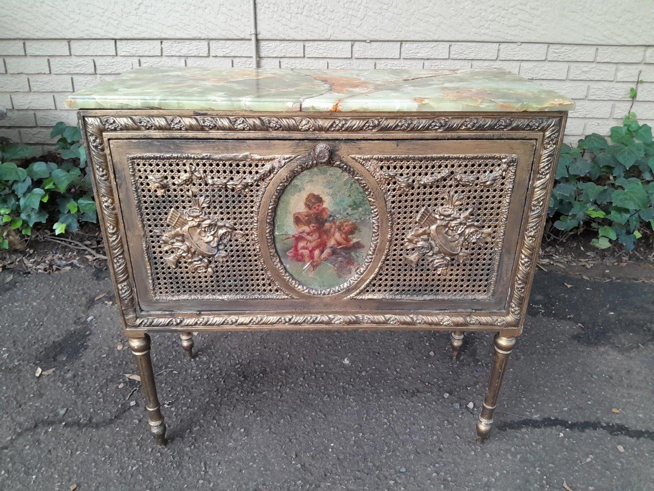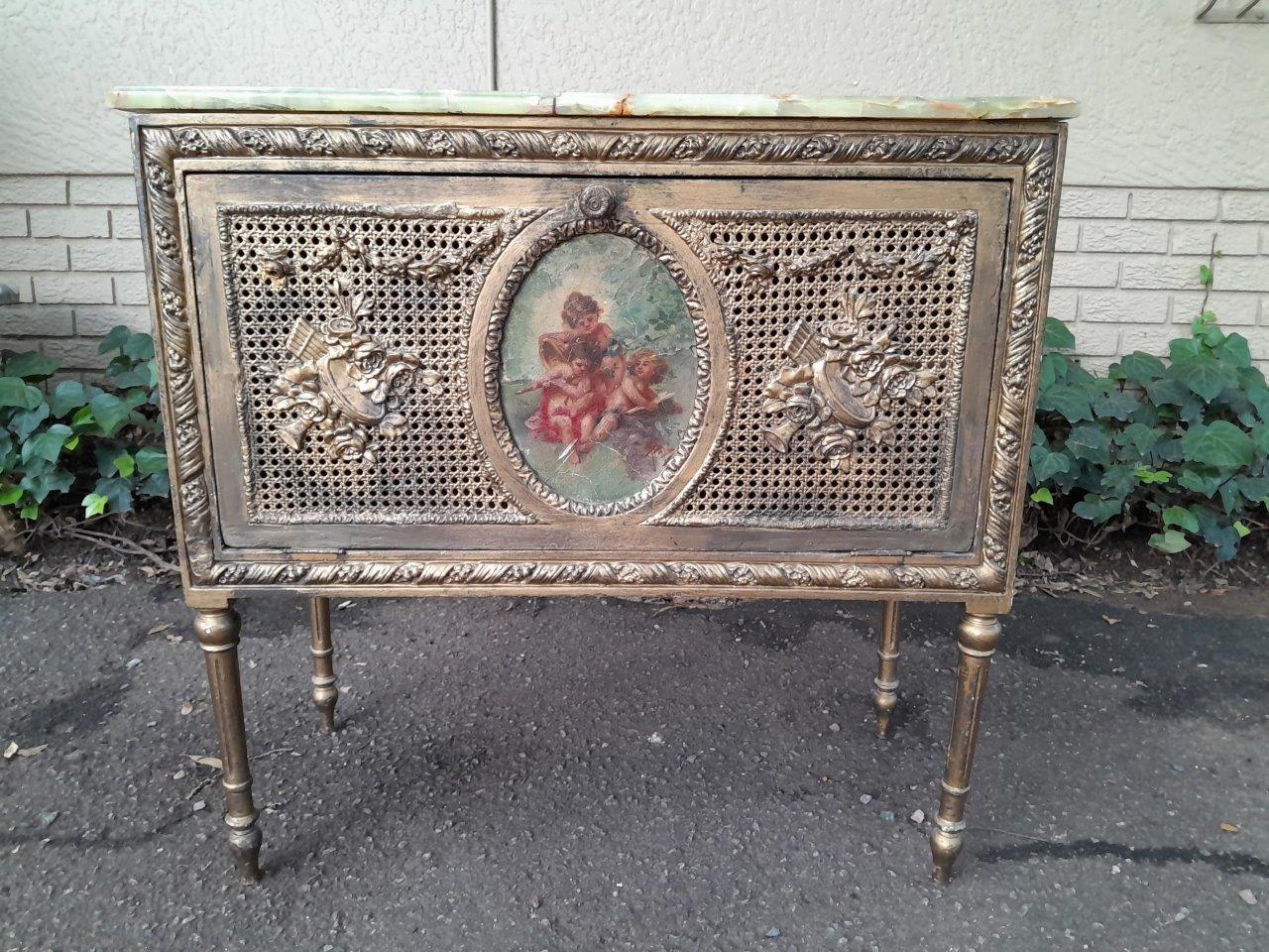 A 20th Century French Style Gilded Rattan Cabinet On Stand