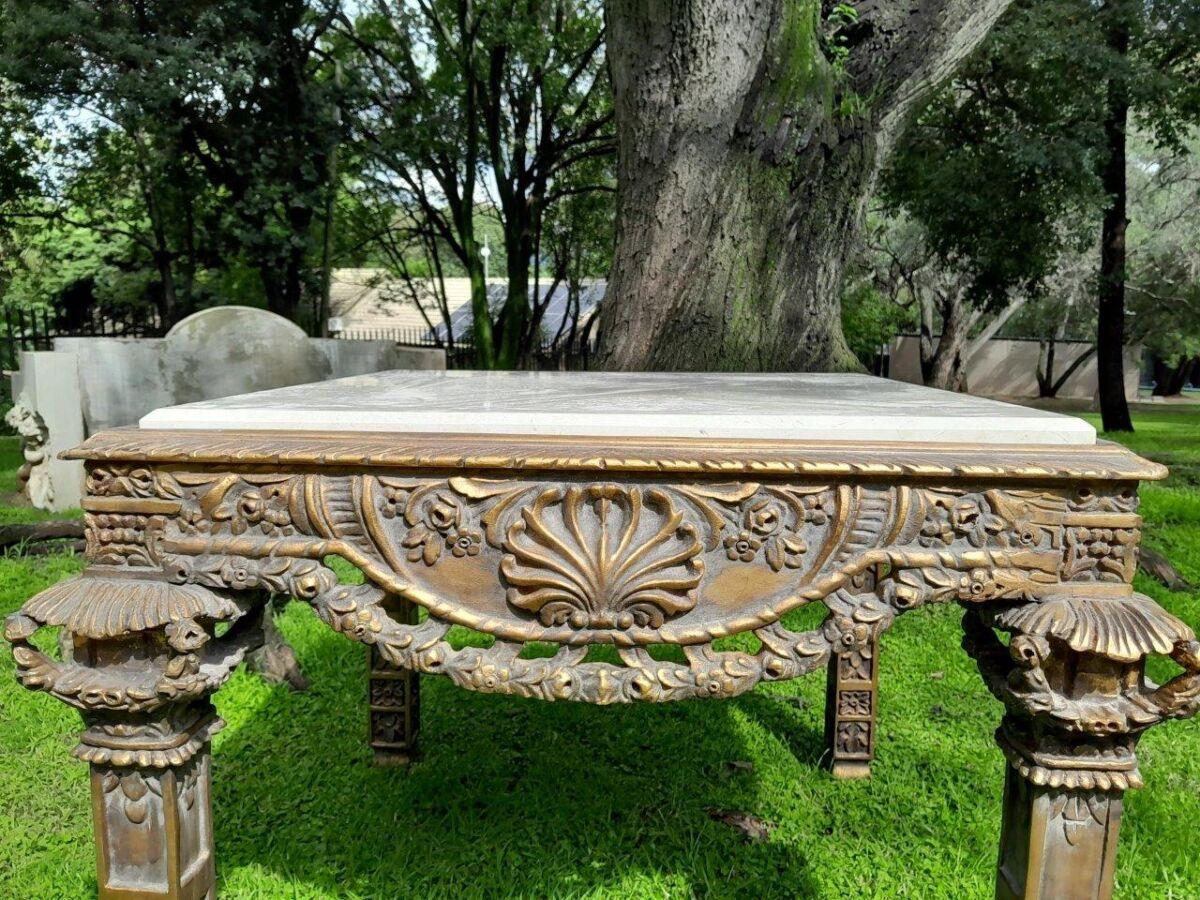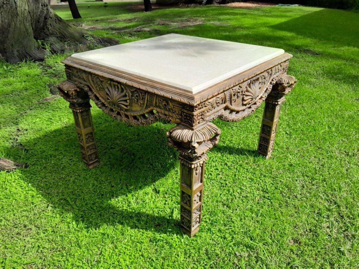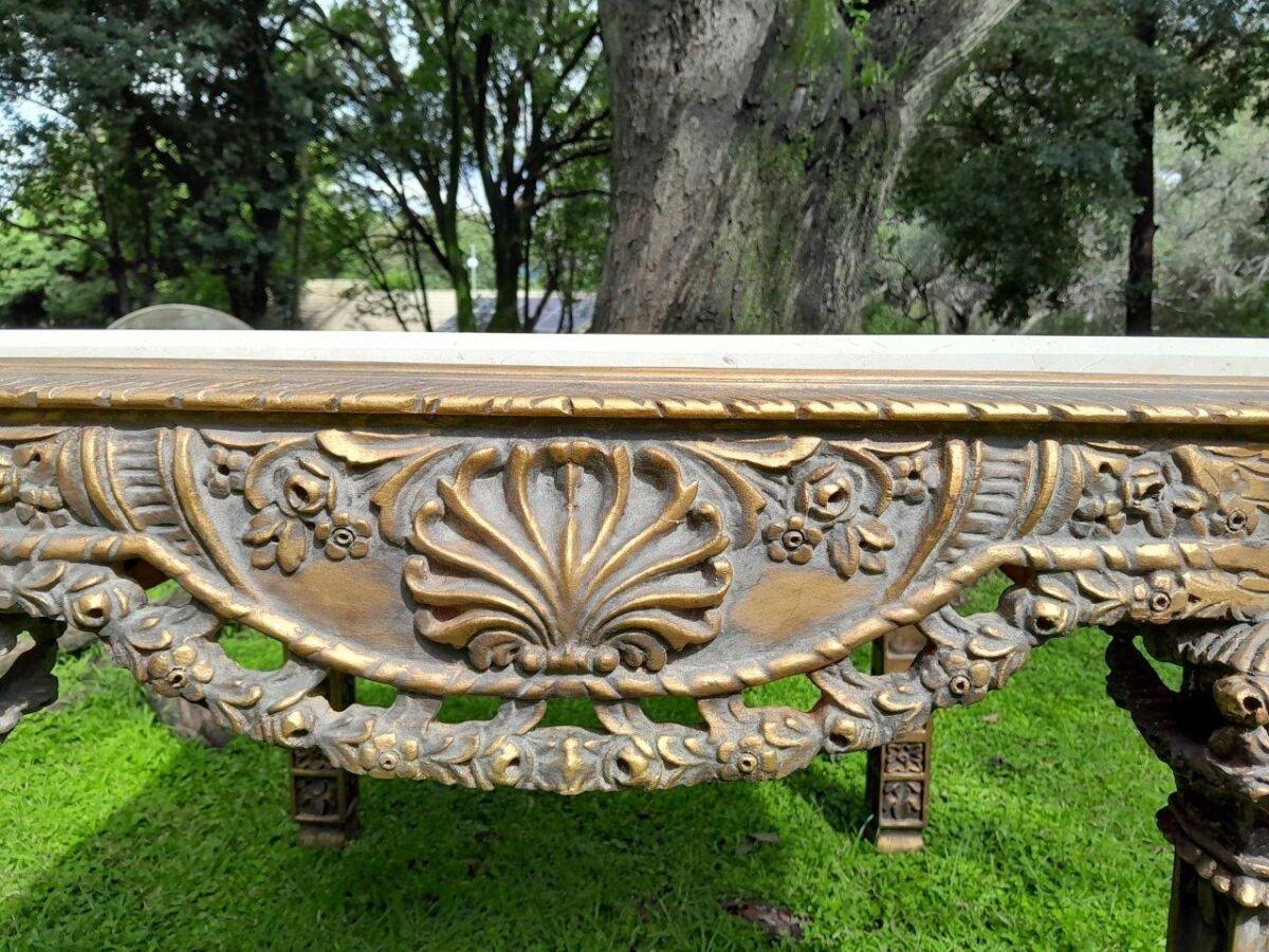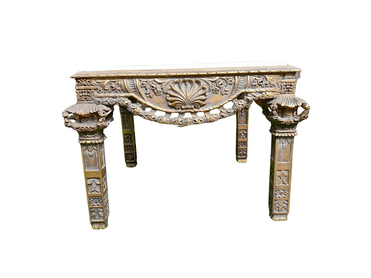 A 20th Century French Style Ornately Carved & Gilded Table / Side Table with Cream Marble Top