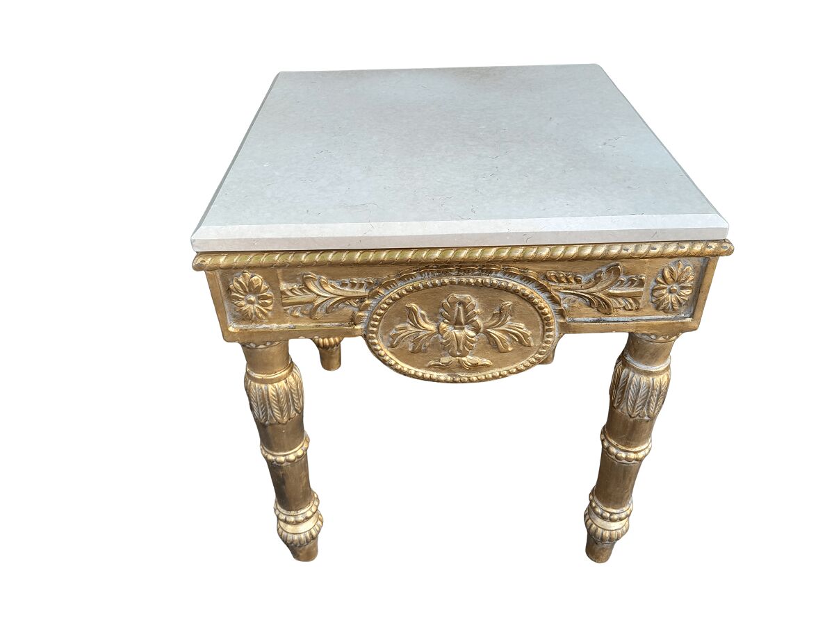 A 20th Century French Style Ornately Carved Side Table with Marble Top