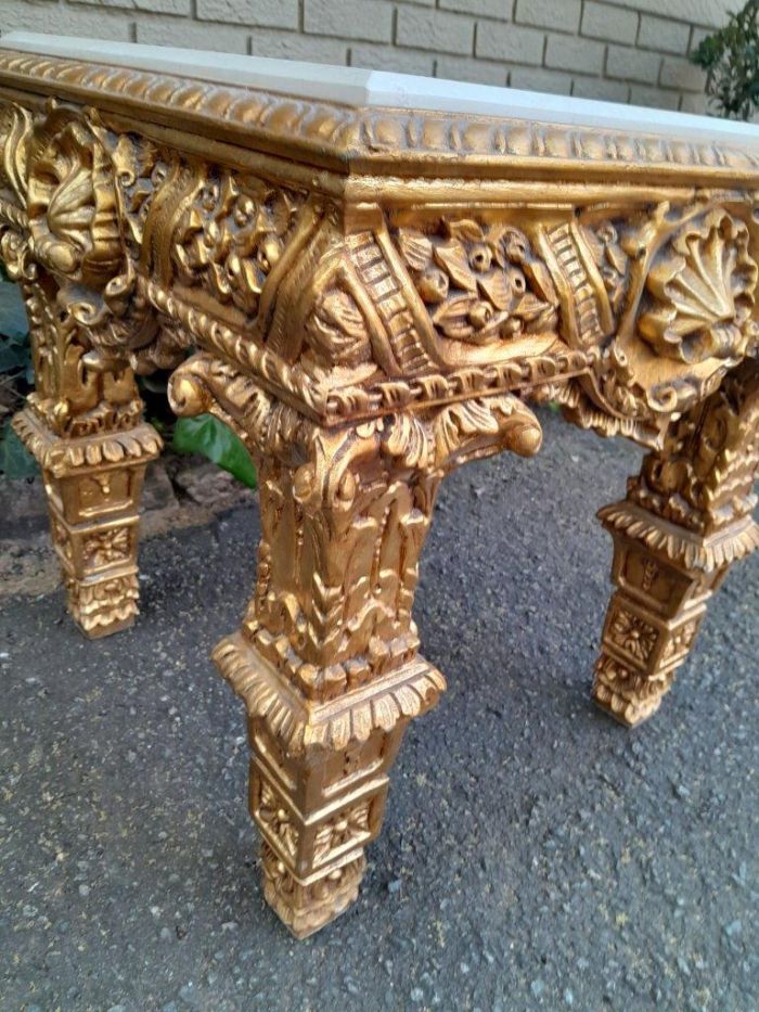 A 20th Century French Style Ornately Carved Side Table with Marble Top
