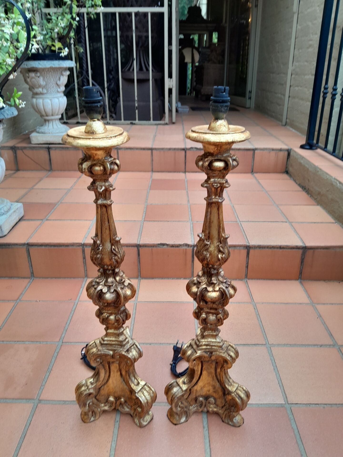 A 20TH Century French Style Pair of Gilt Painted Lamp Bases (Electrified)