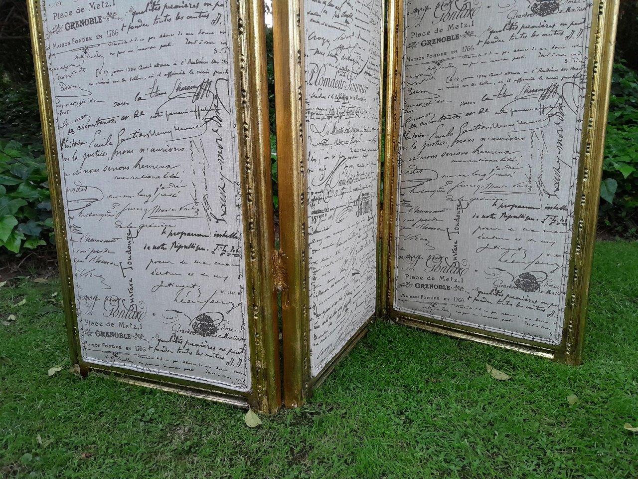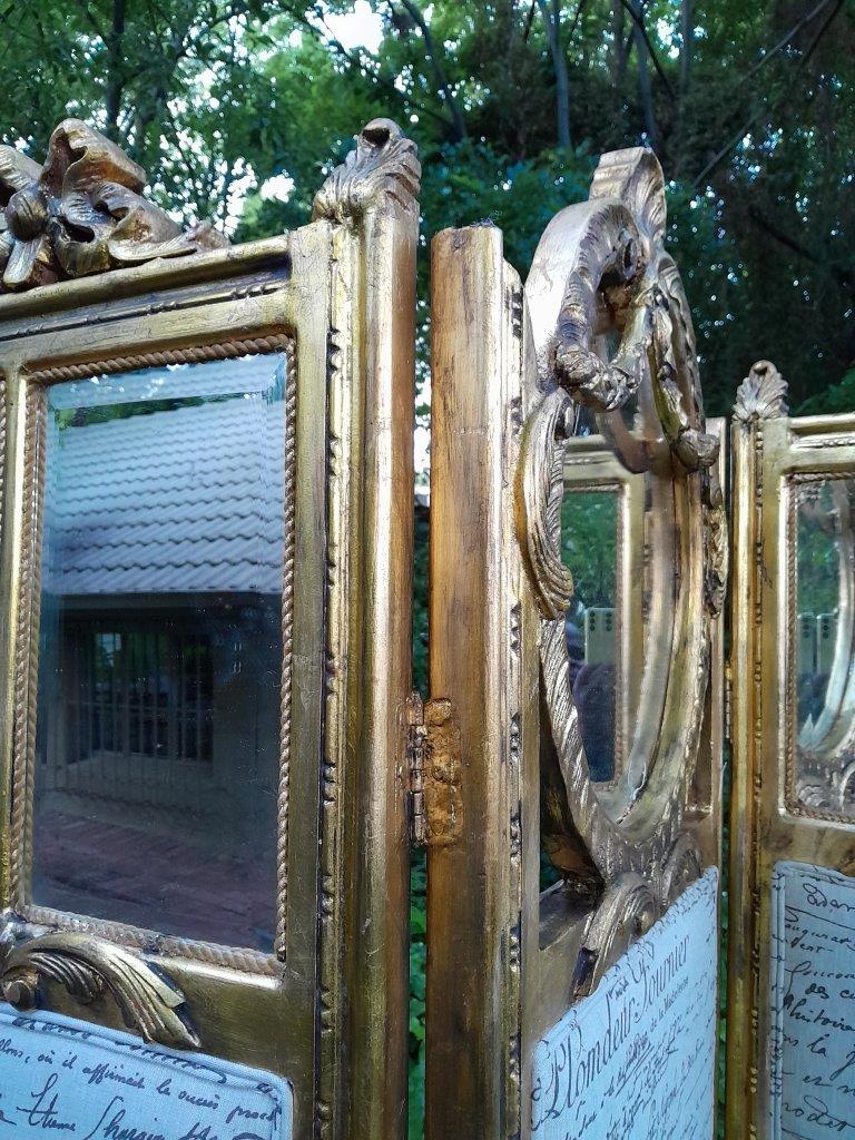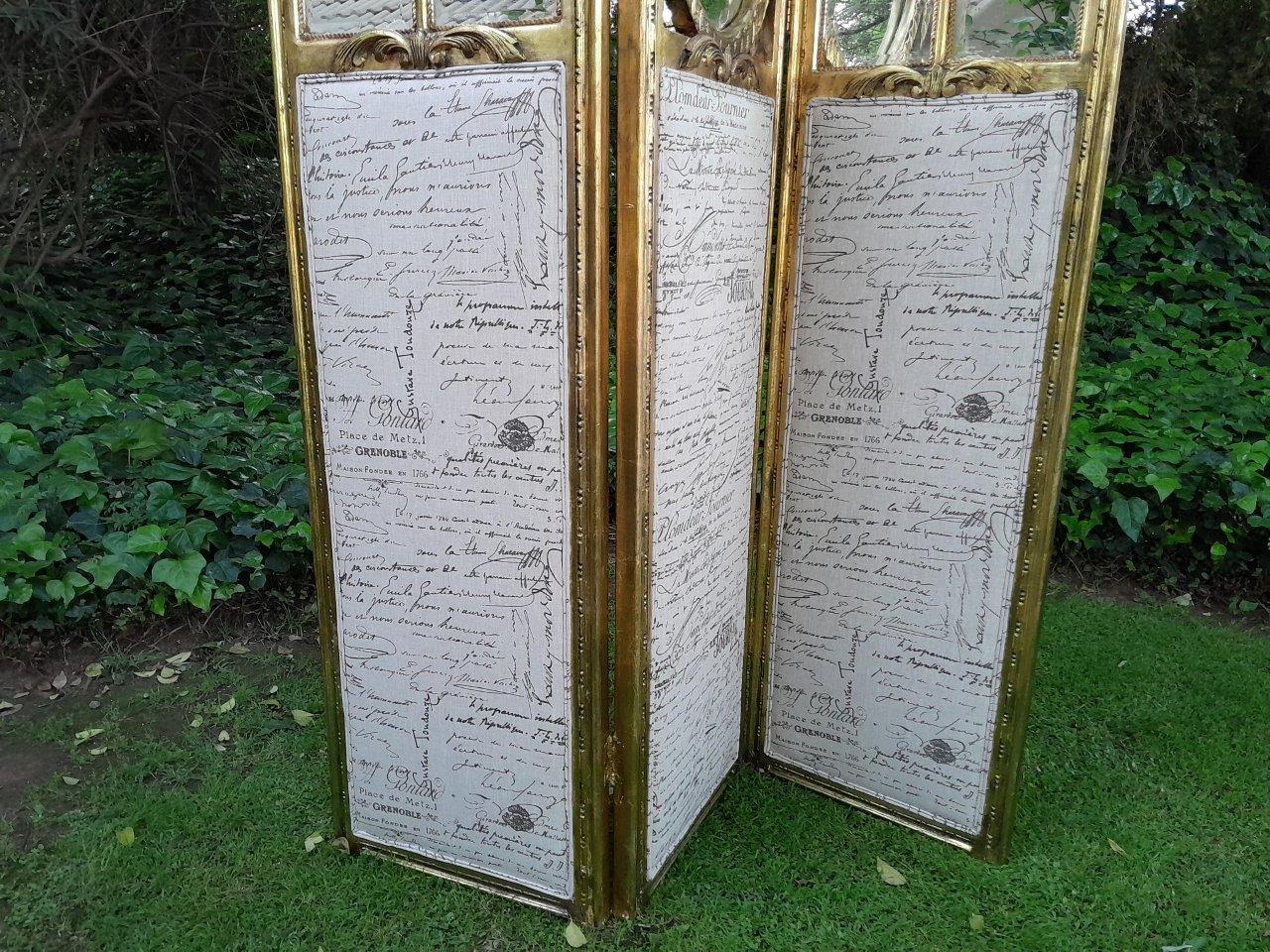 A 20TH Century French Style Screen With Mirror, Ornately Carved and Hand Gilded, Upholstered in a Custom and Hand-Made For The Crown Collection