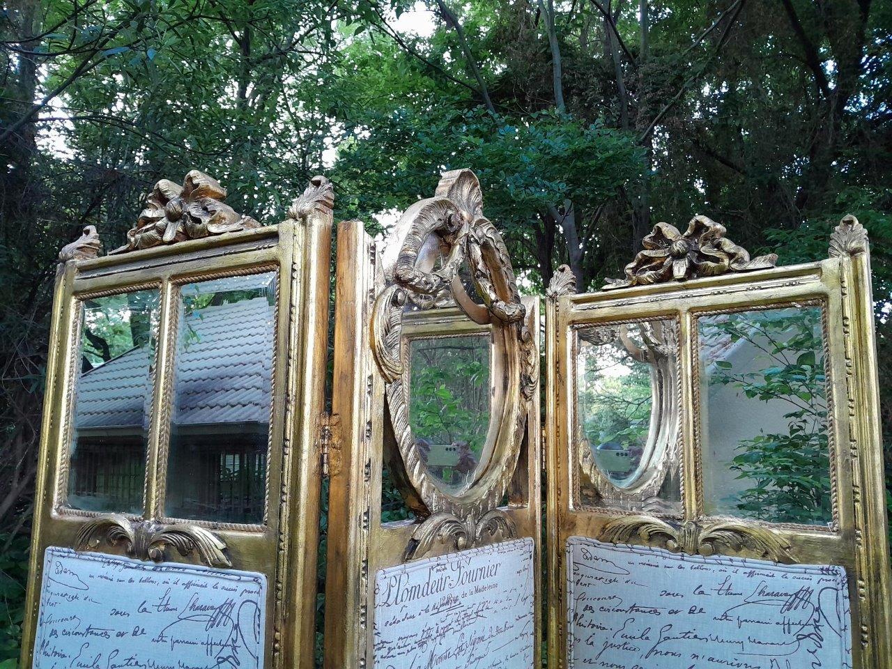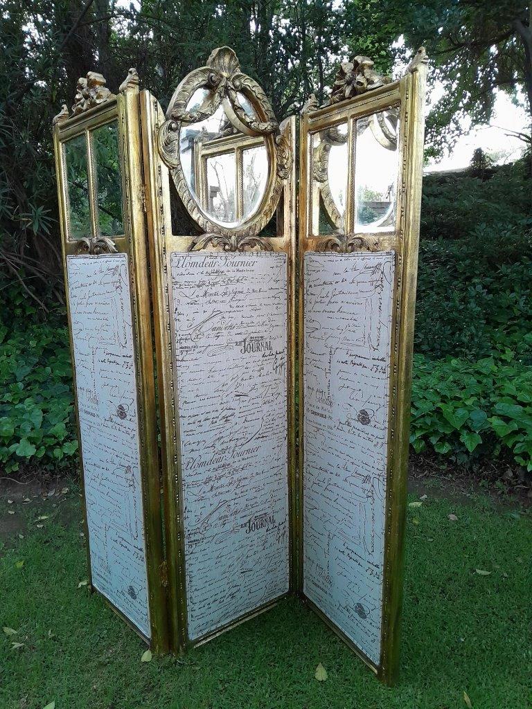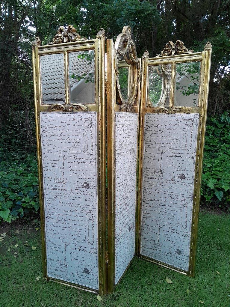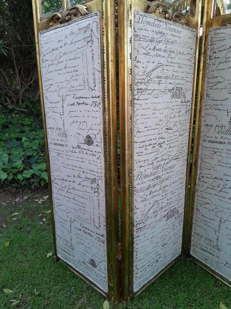 A 20TH Century French Style Screen With Mirror, Ornately Carved and Hand Gilded, Upholstered in a Custom and Hand-Made For The Crown Collection