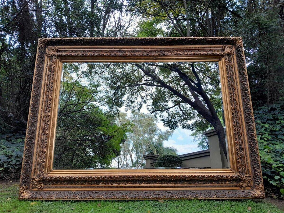 A 20TH Century Heavily Carved And Bevelled Framed Mirror Of Large Proportions