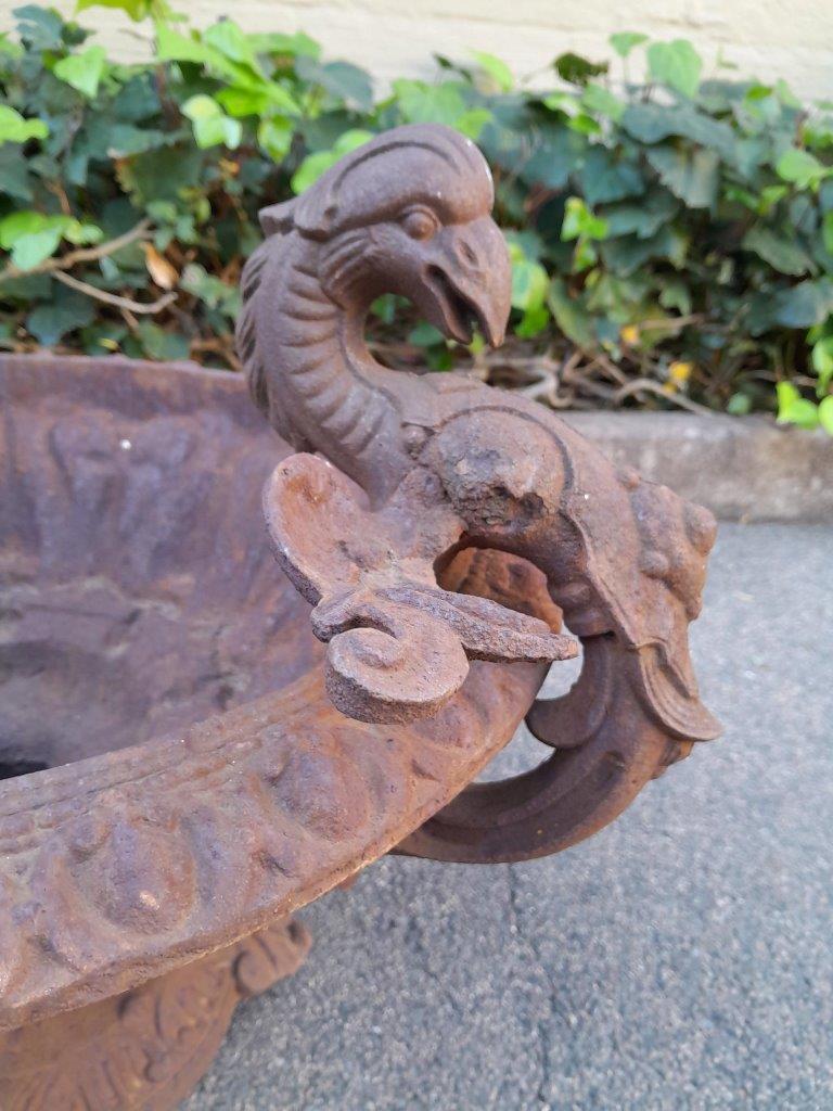 A 20th Century Heavy Cast Iron Urn With Phoenix Handles