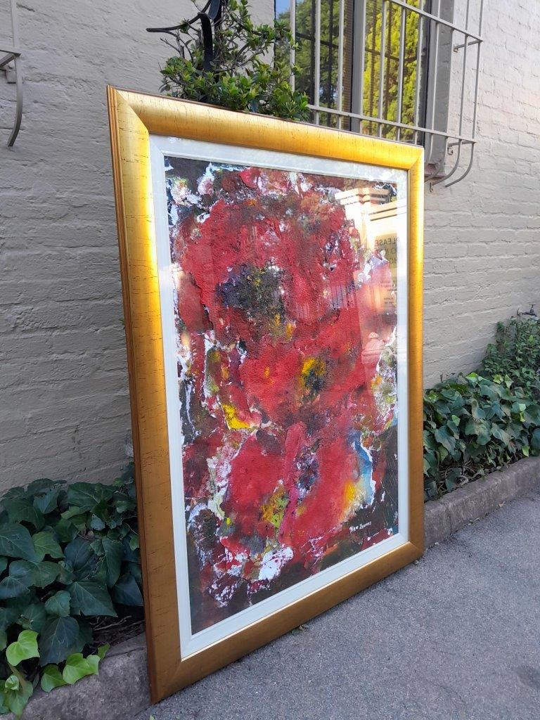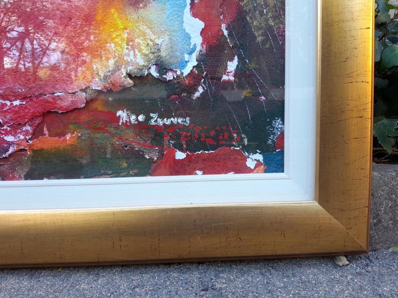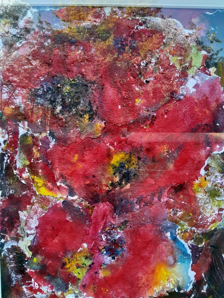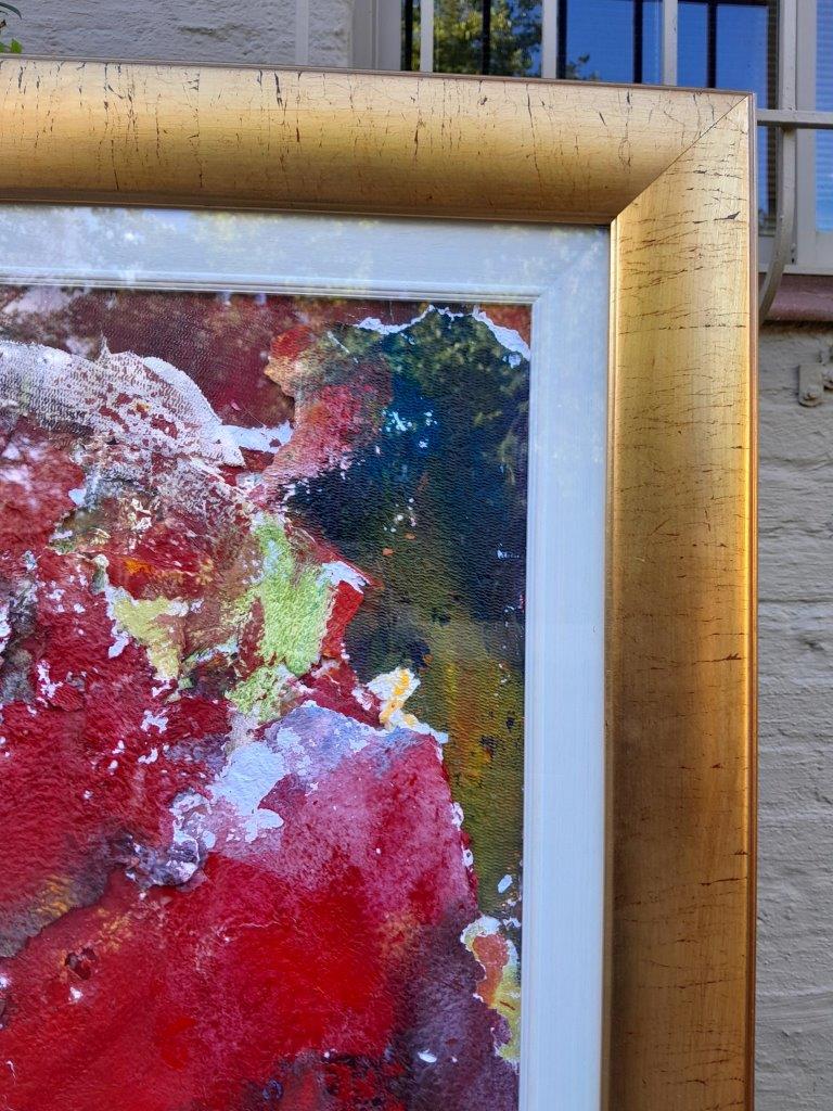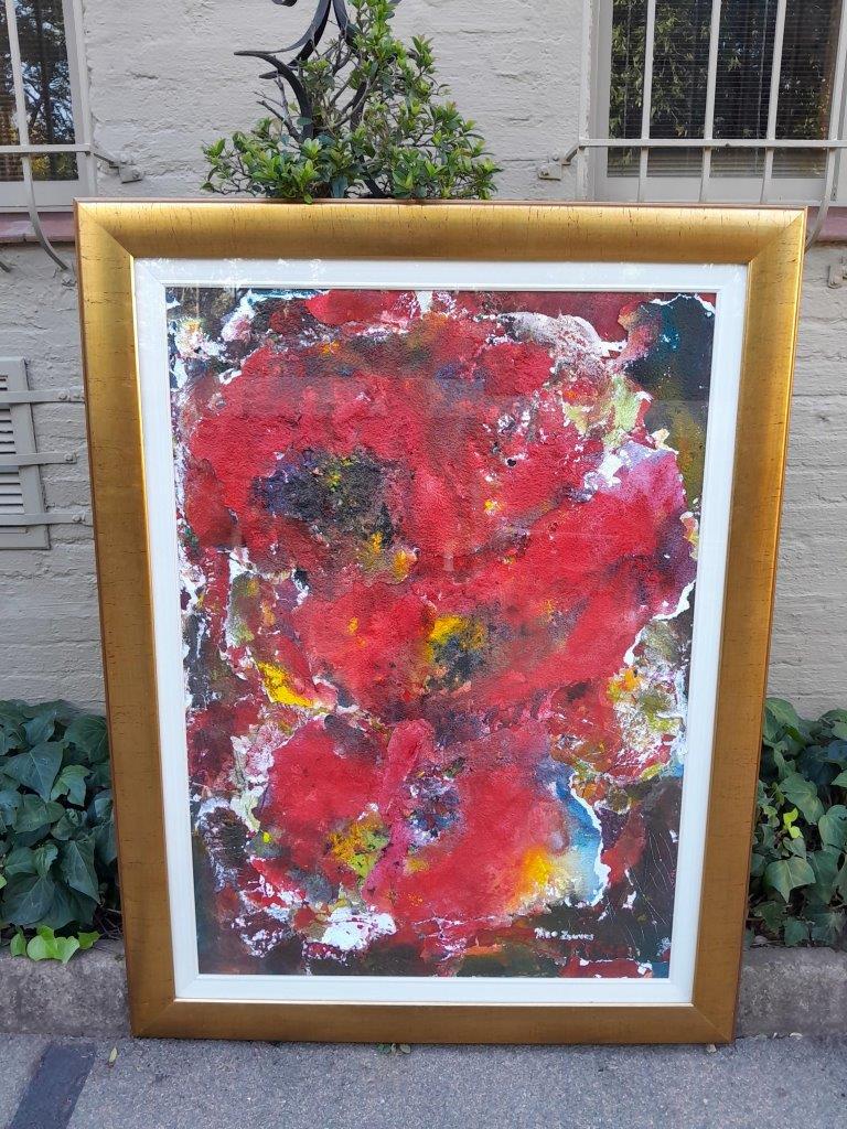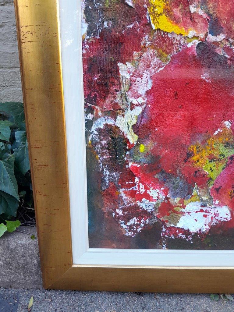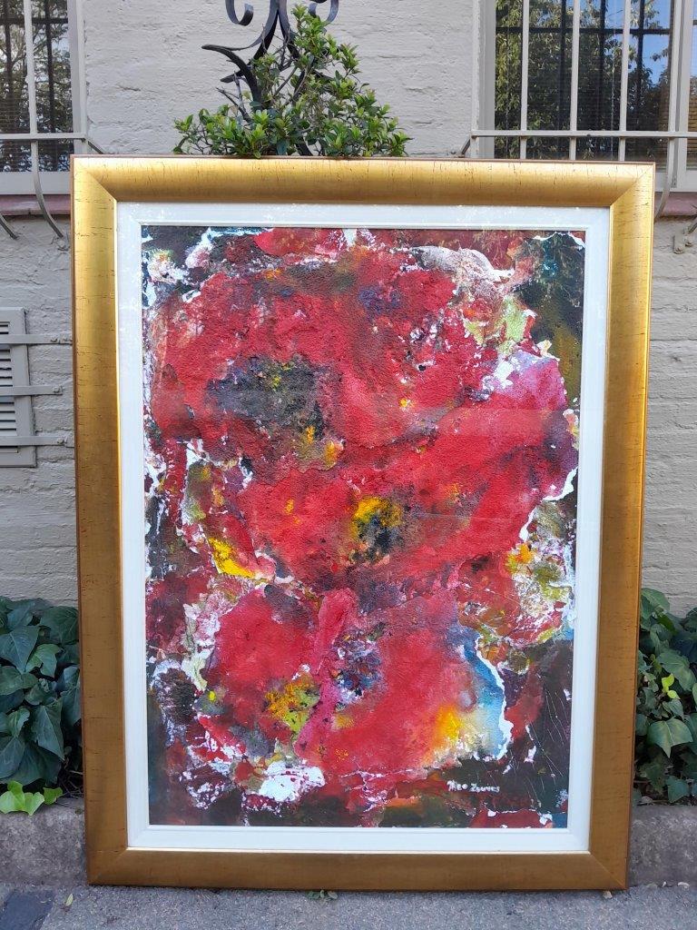 A 20th Century Large Oil On Board Oil / Collage Of Poppies Signed In A Gold Frame