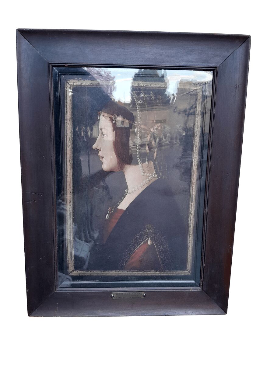 A 20th Century Lithograph Portrait Beatrice D’este After Ambrogio De Predis 1455 To1508 With Brass Plaque