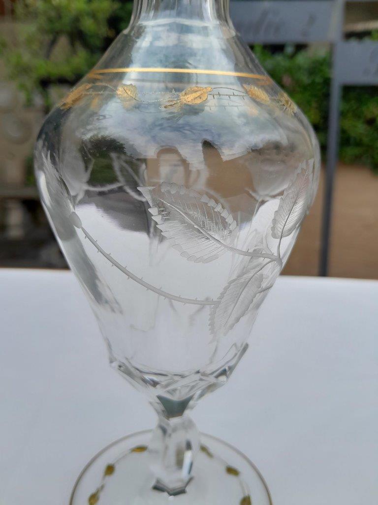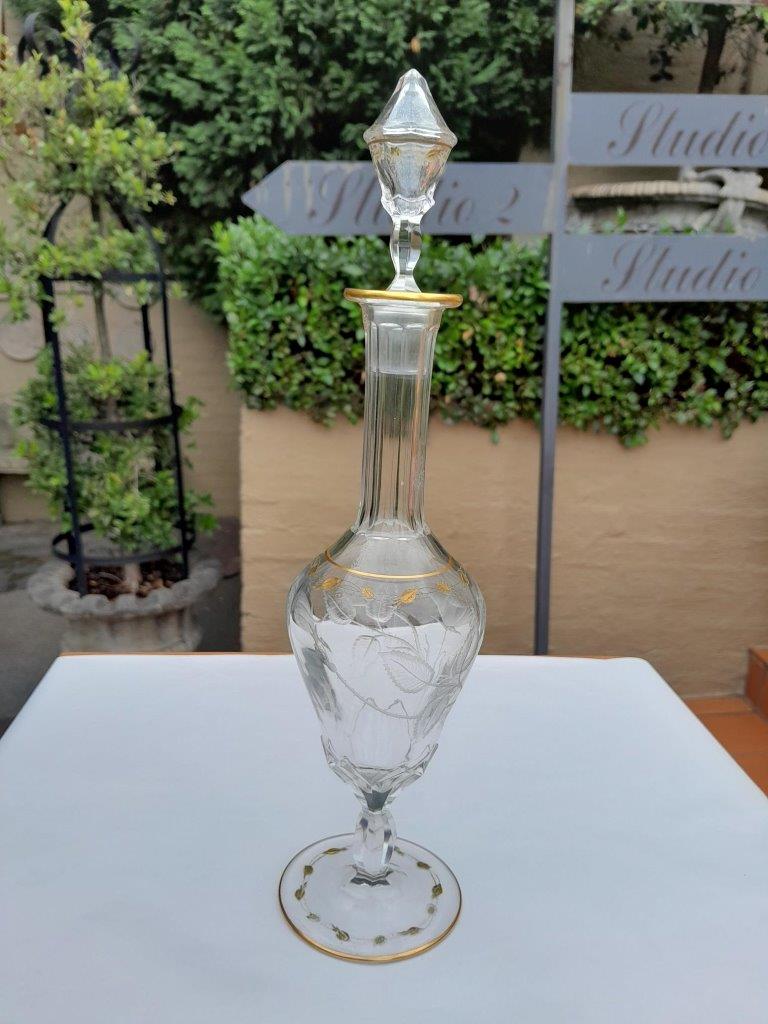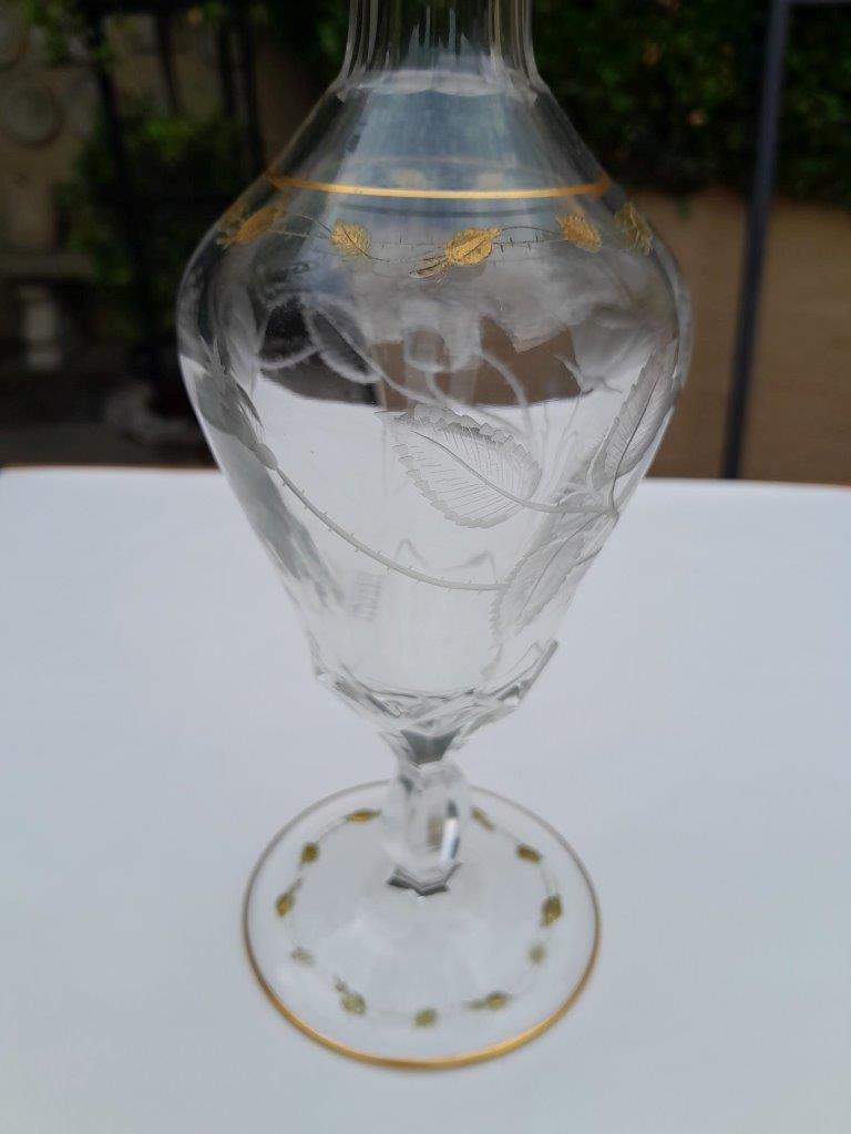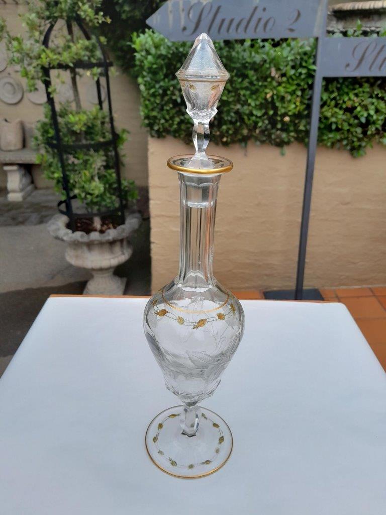 A 20th Century Moser Cut Crystal Carafe With 24kt Gold Design With Stopper