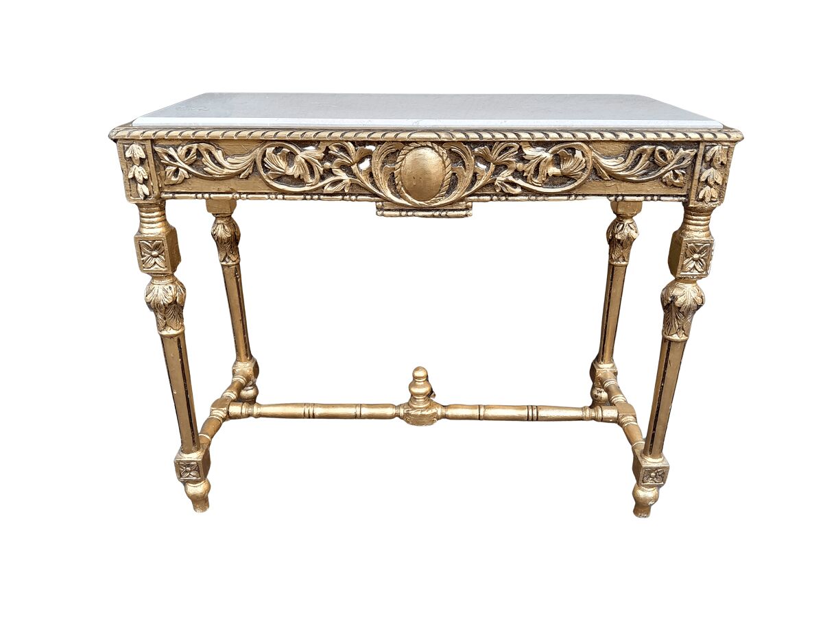 A 20th Century Ornately Carved and Hand-Gilded Console Table with Cream Marble Top