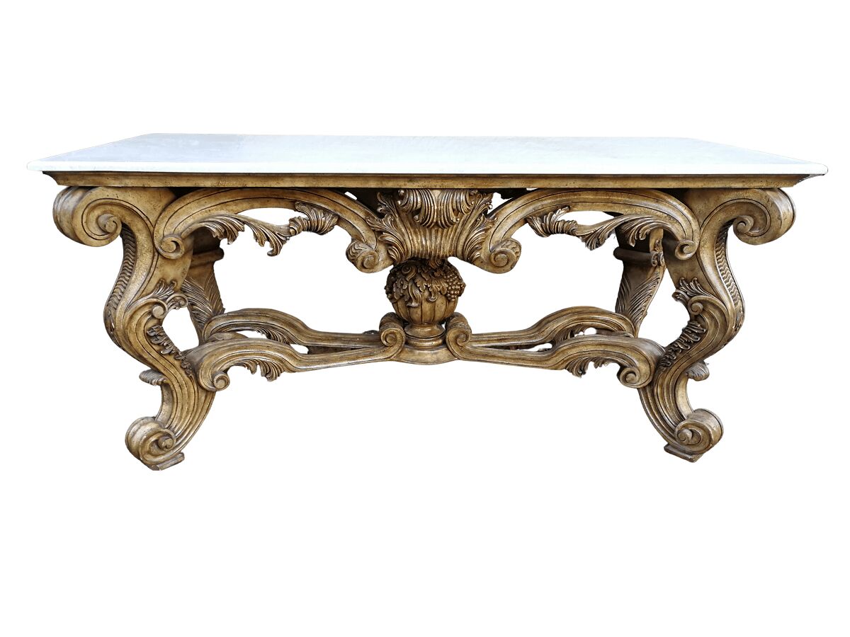 A 20th Century Ornately Carved Console Table with Marble Top of Large Proportions ND