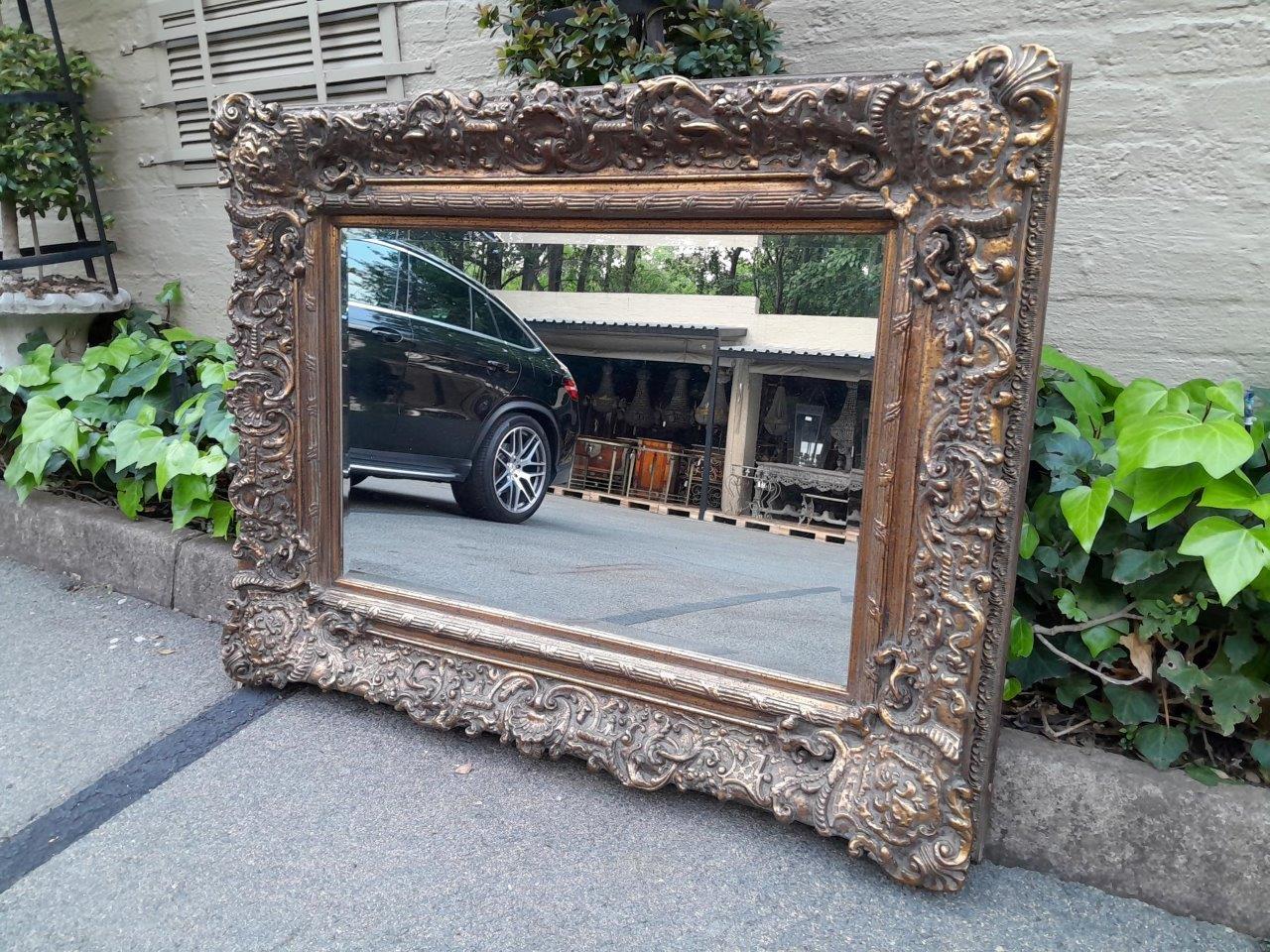 A 20th Century Ornately Carved Giltwood Bevelled Mirror Of Large Proportion