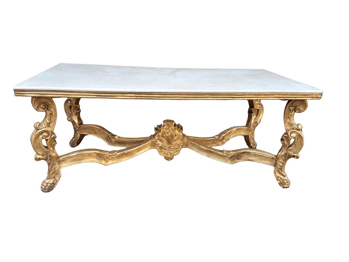 A 20TH Century Ornately Carved & Hand-Gilded Console/Entrance/Dining/Drinks Table with Cream Marble Top