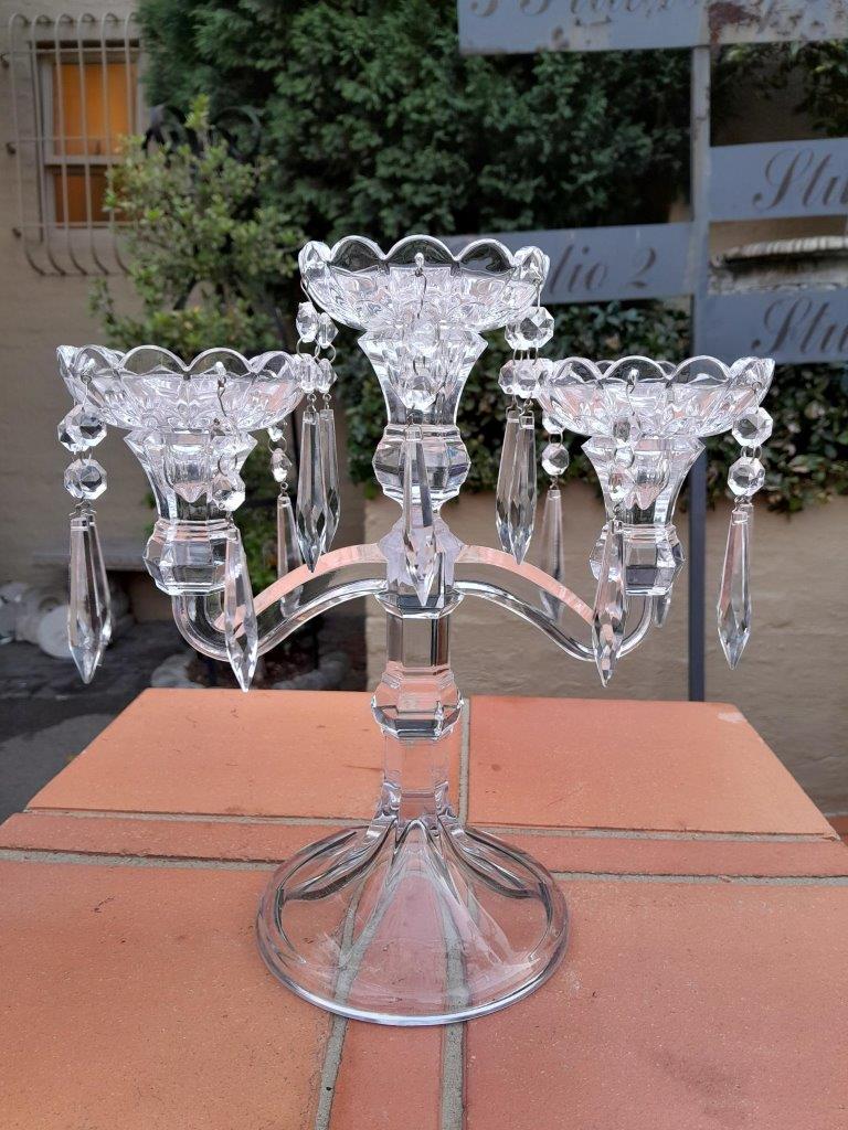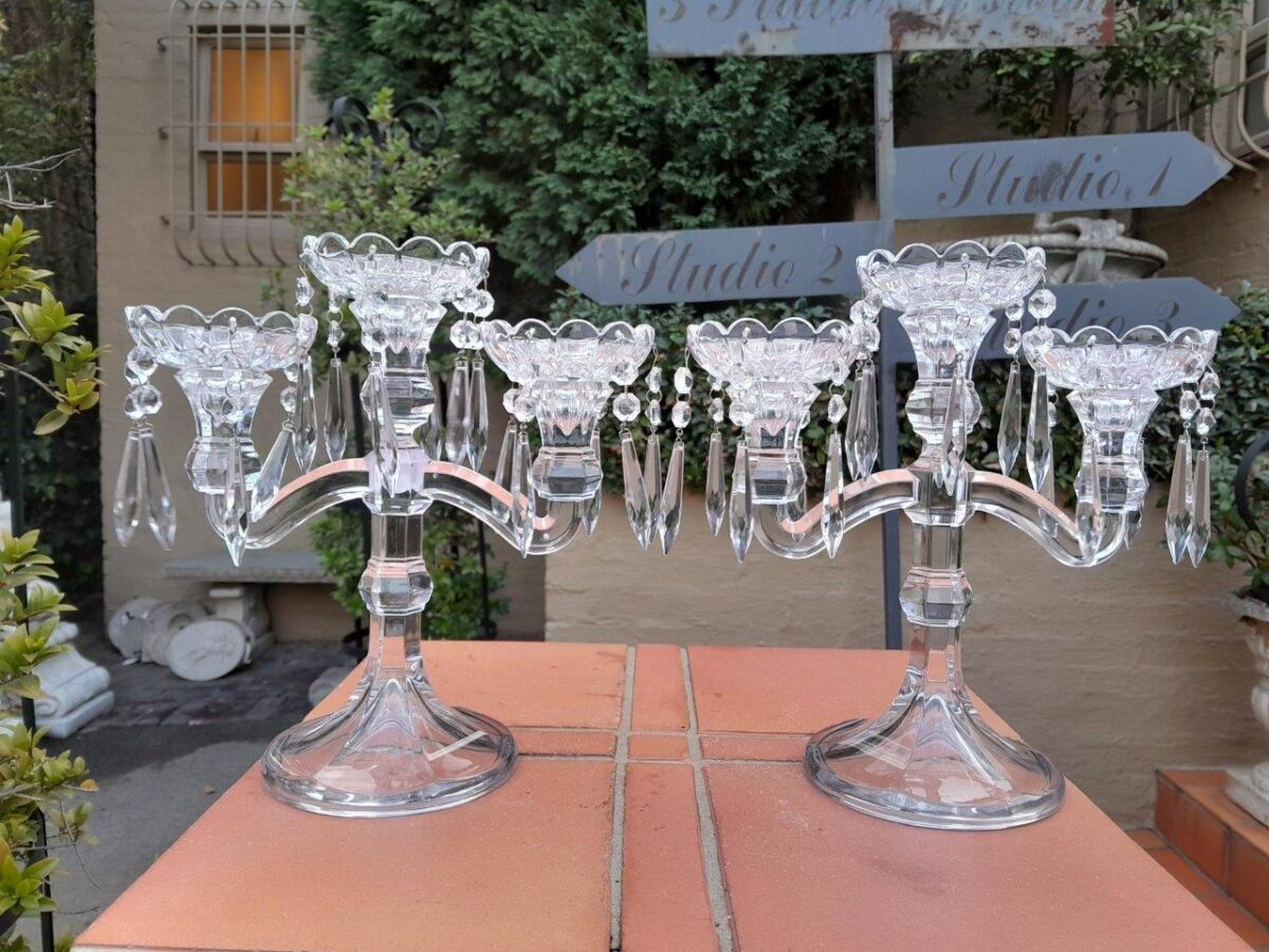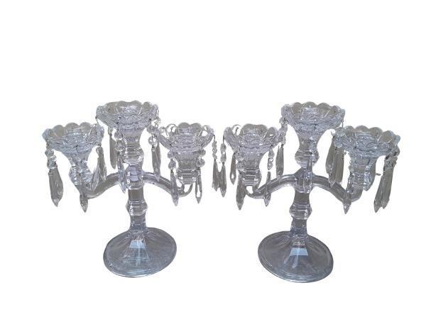 A 20TH Century Pair of Candelabras with Drip Tray and Crystals