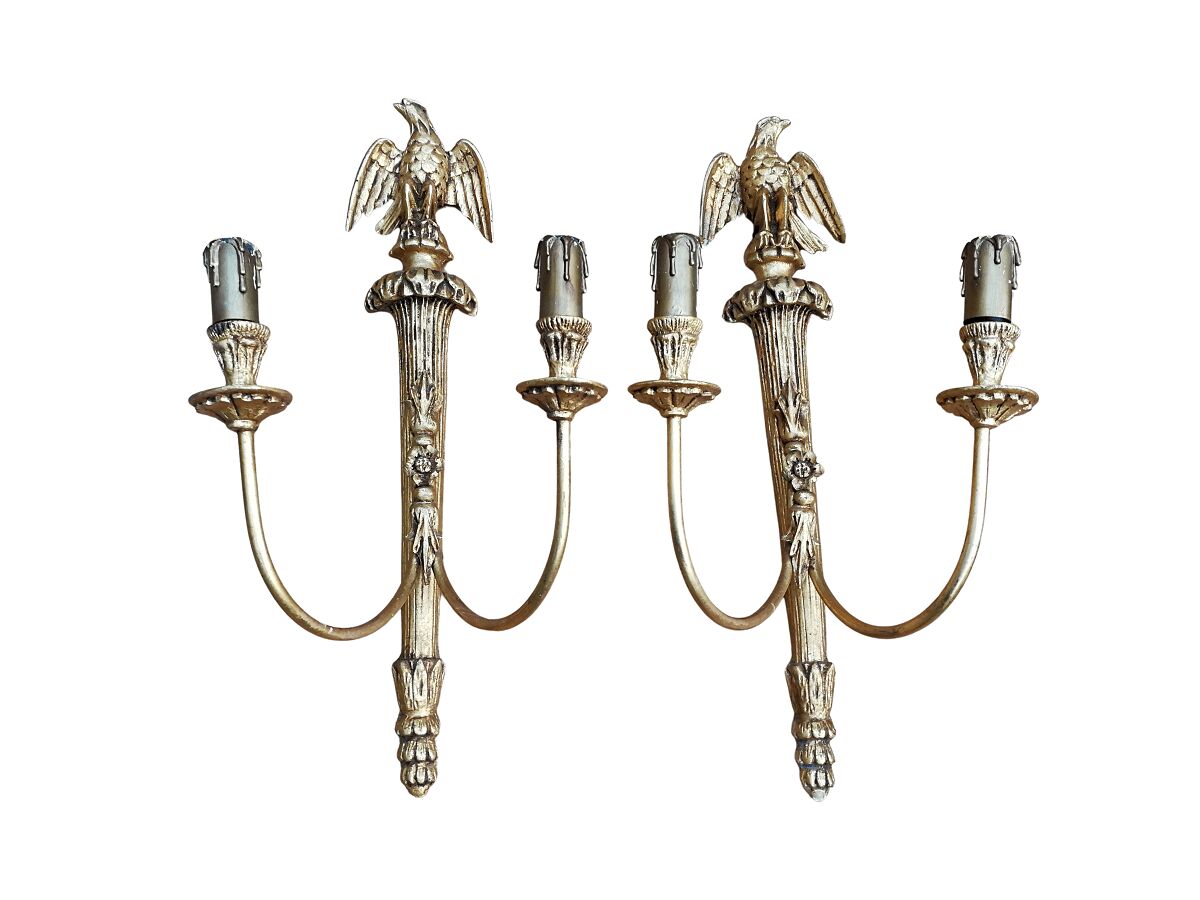A 20th Century Pair Of Carved Gold Painted Wall Sconces With Eagles