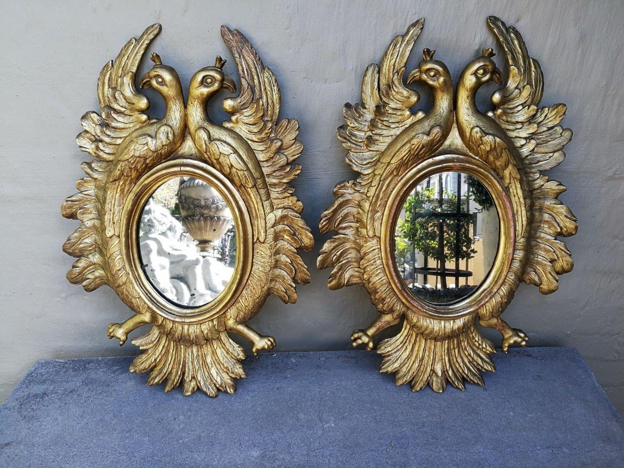 A 20th Century Pair Of Carved Mirrors With Stylised Bird Design