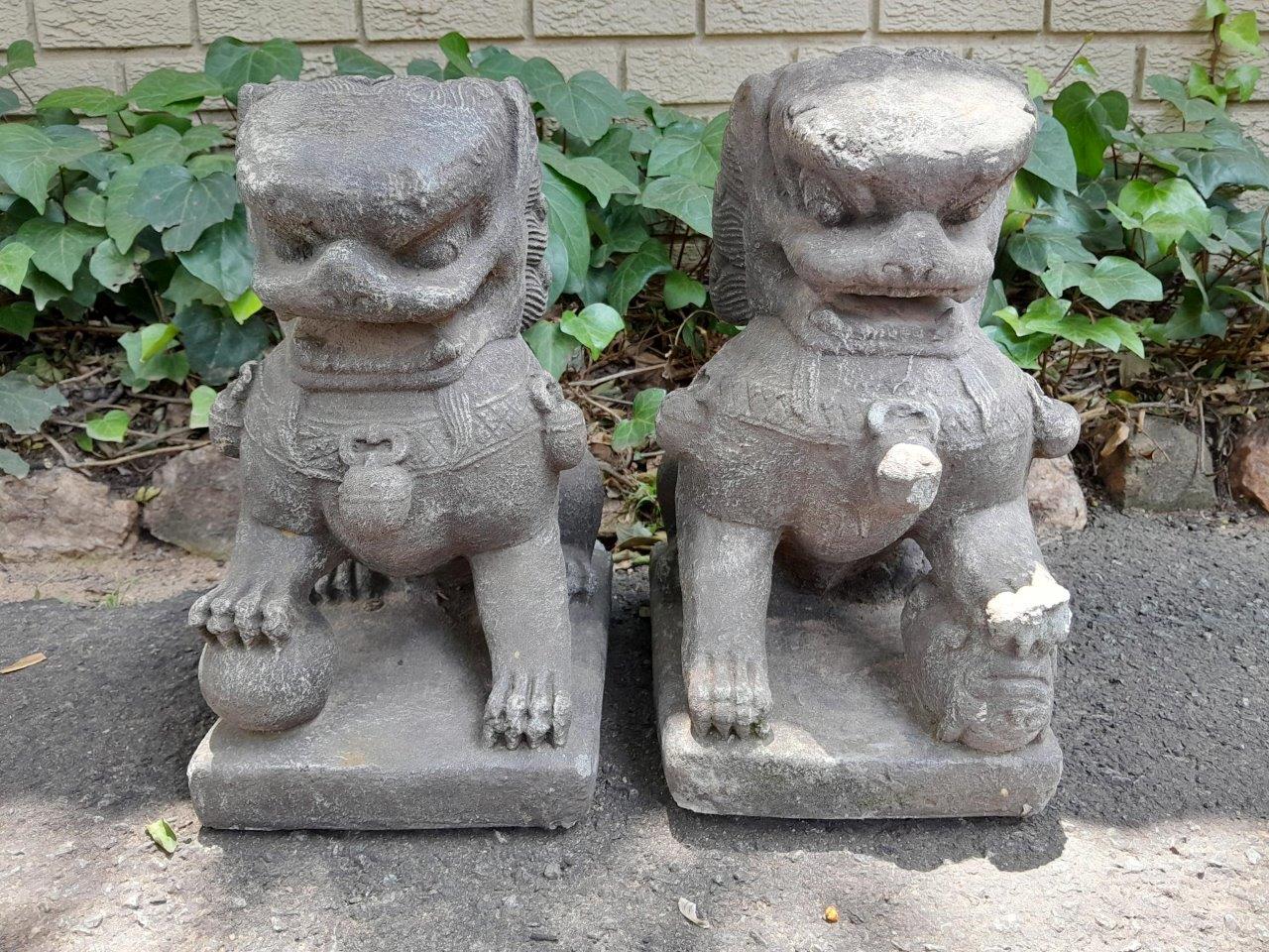 A 20th  Century Pair Of Chinese Concrete Foo Dogs