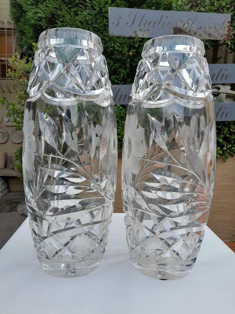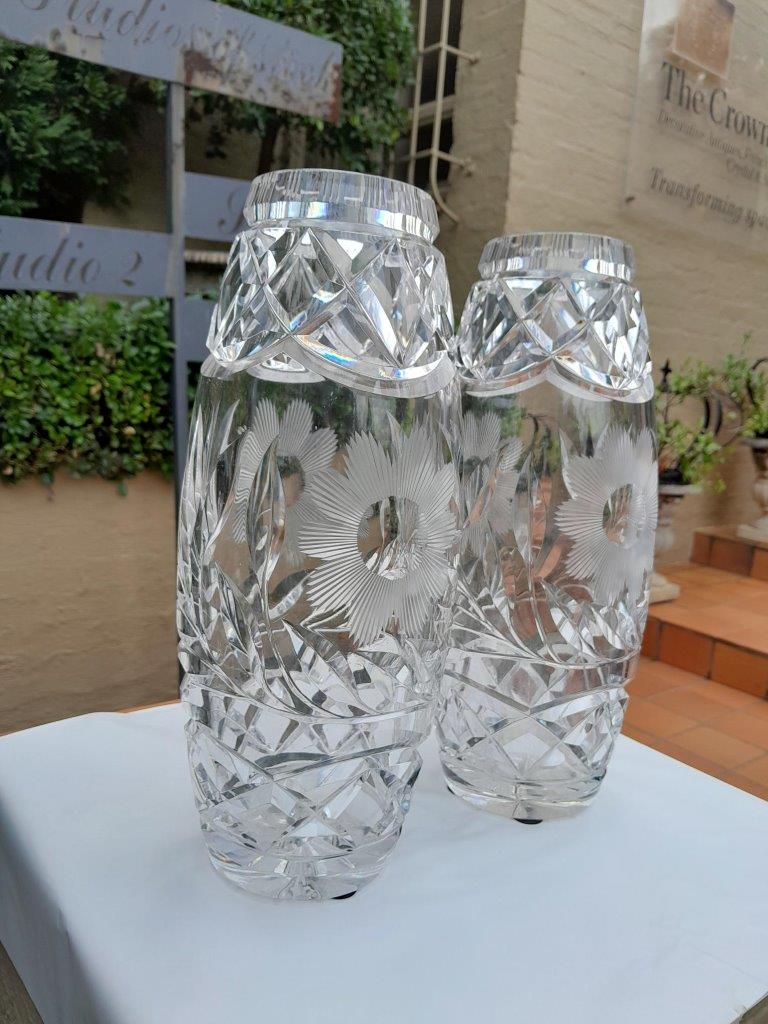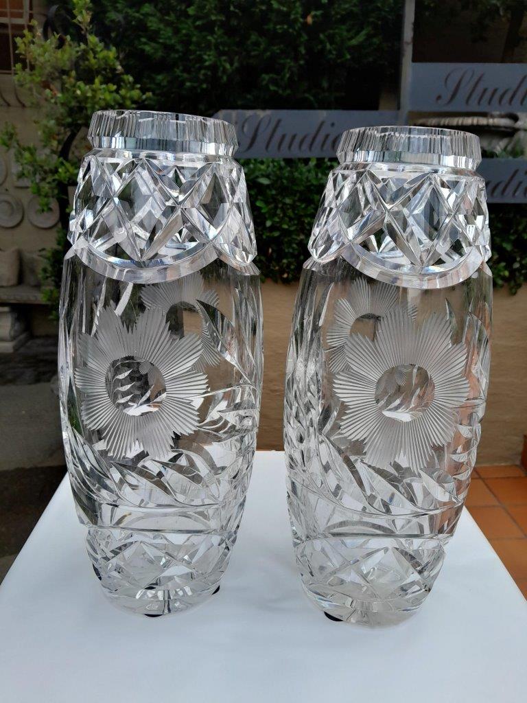 A 20th Century Pair Of Crystal Cut Vases