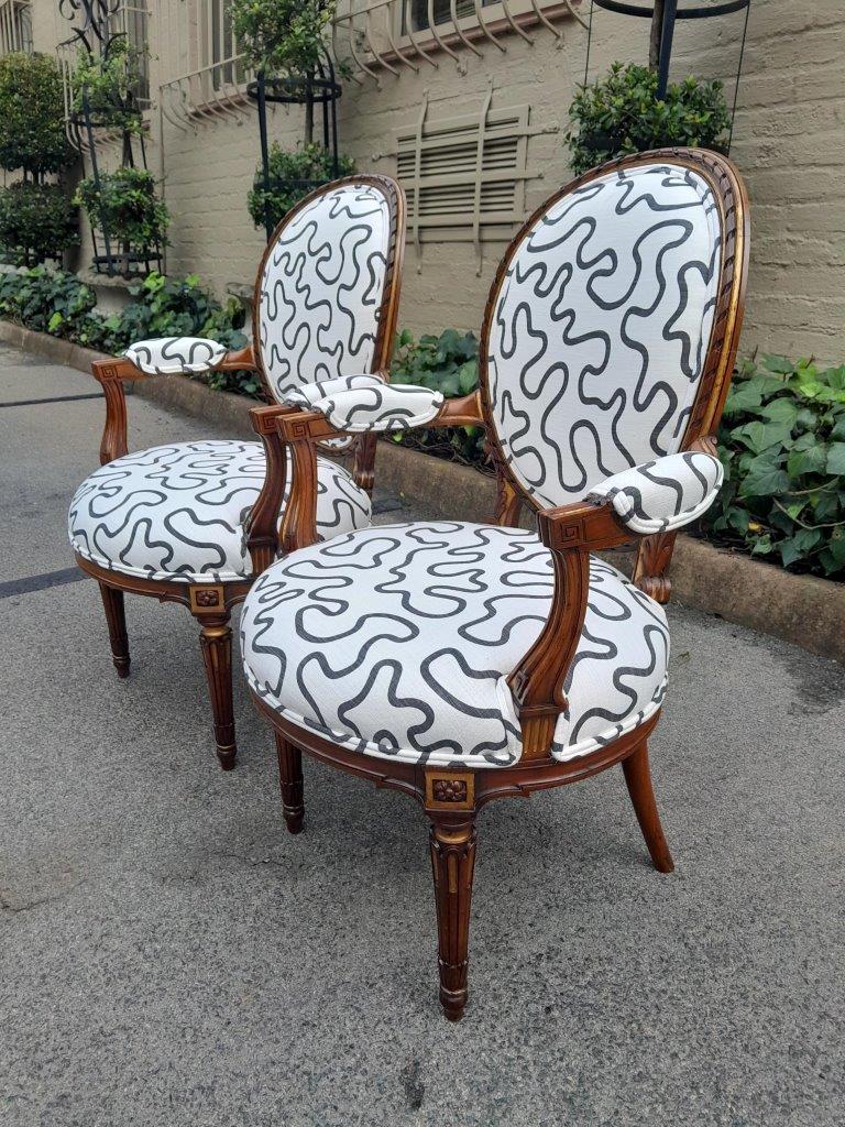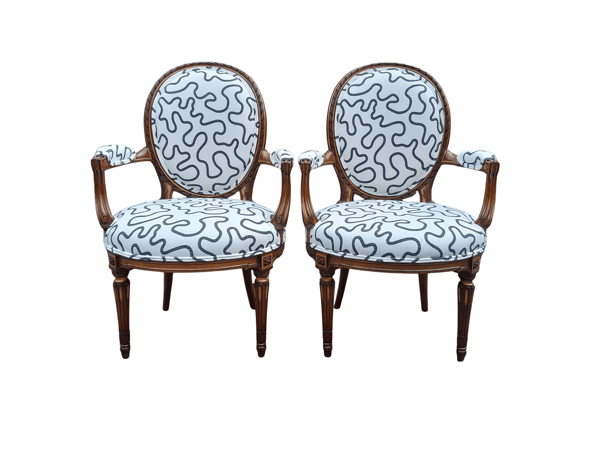A 20th Century Pair Of French Louis XVI Style Walnut Chairs