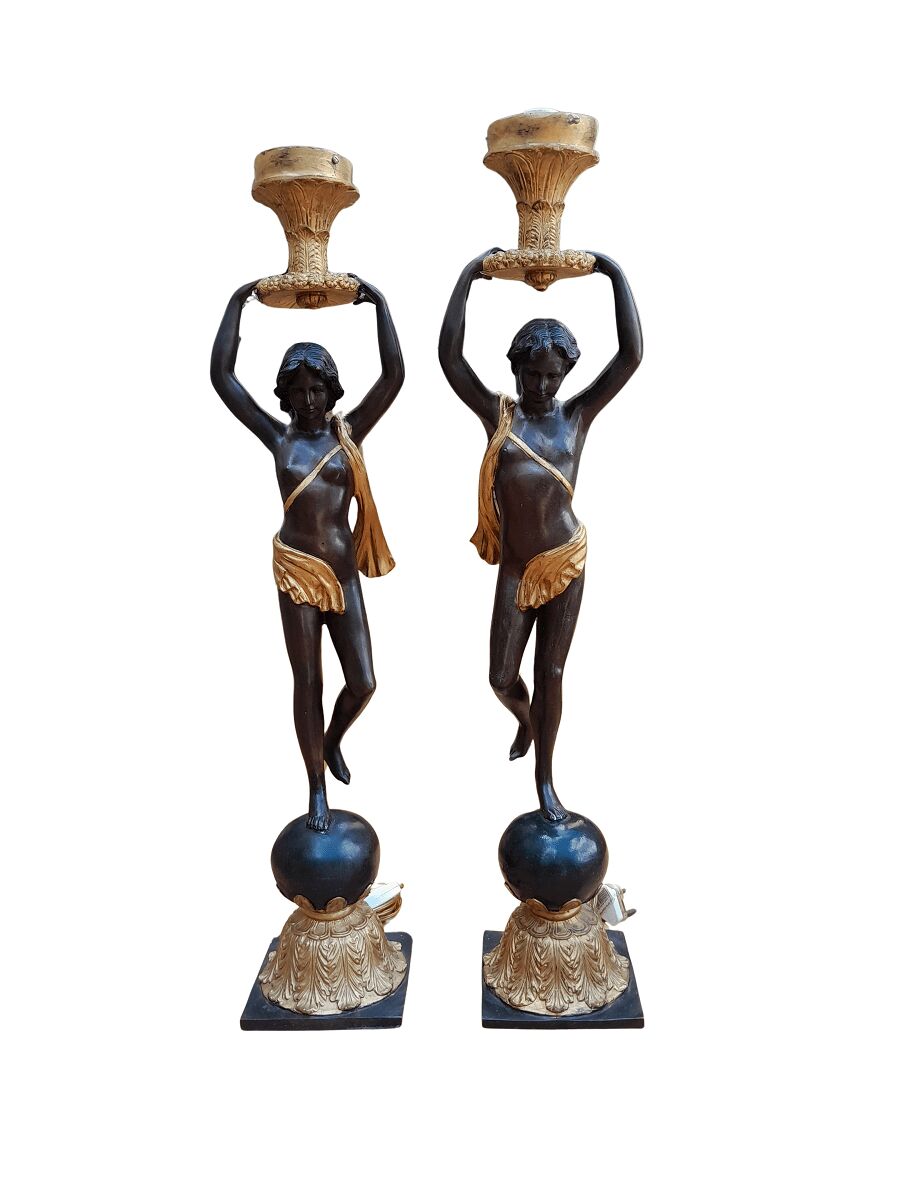 A 20th Century Pair of Large Size Bronze Blackamoor Torchere Lamps ND