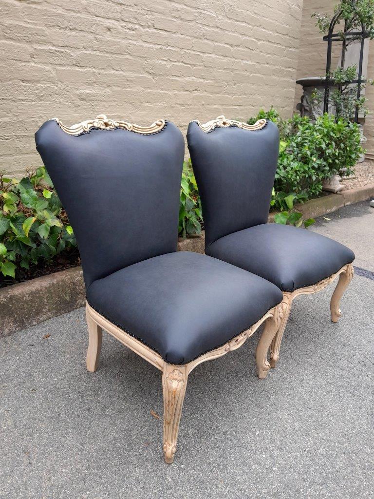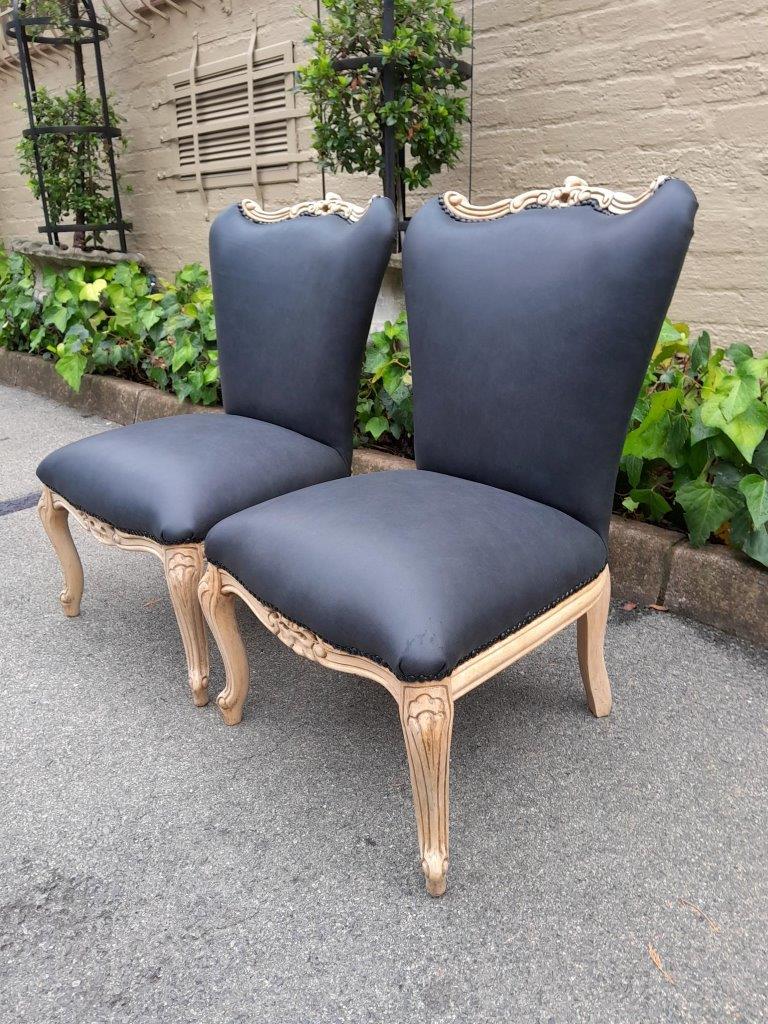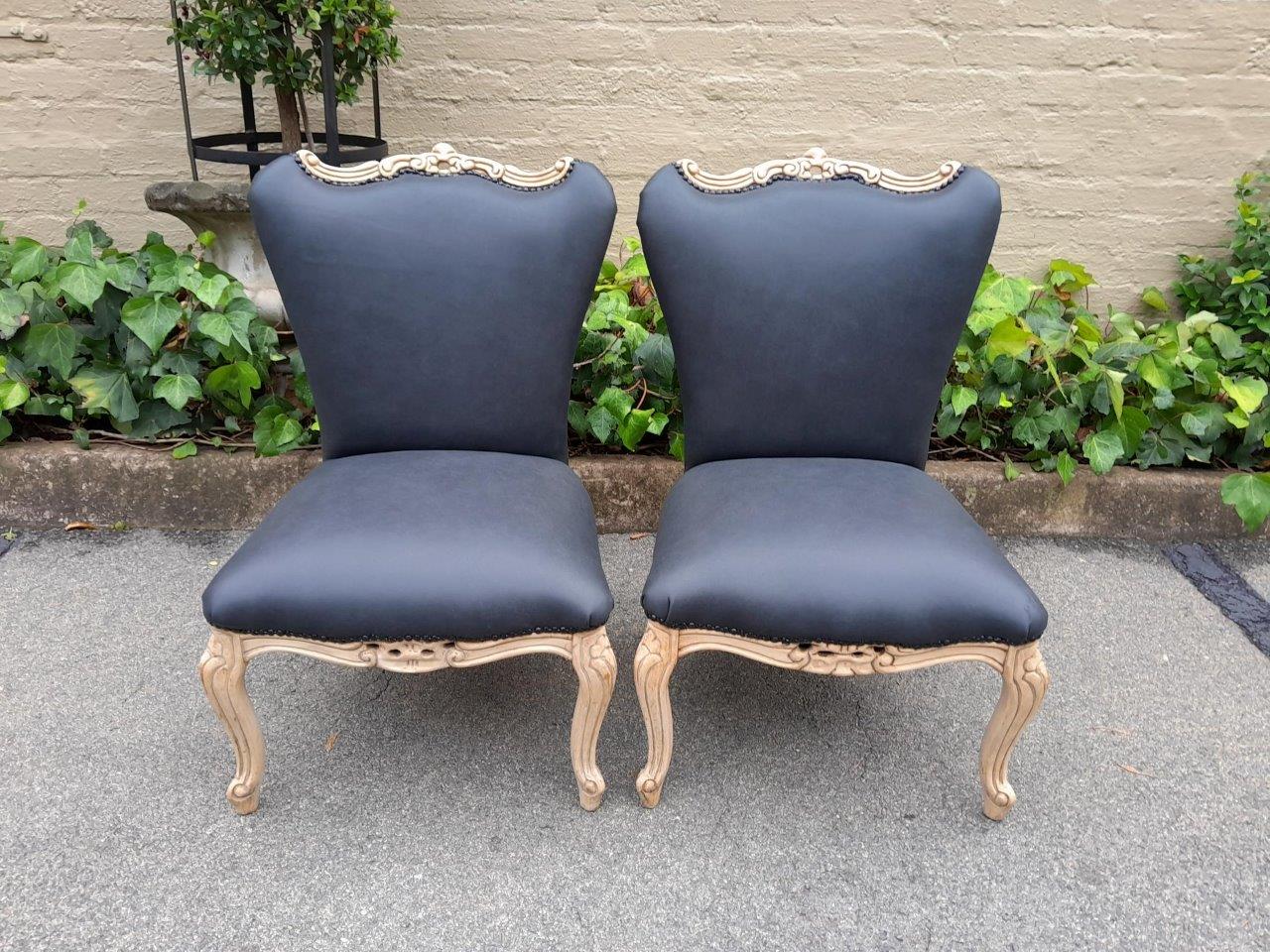 A 20TH Century Pair of Mahogany Slipper Chairs Finished in a Contemporary Bleached Finish and Upholstered in Leather