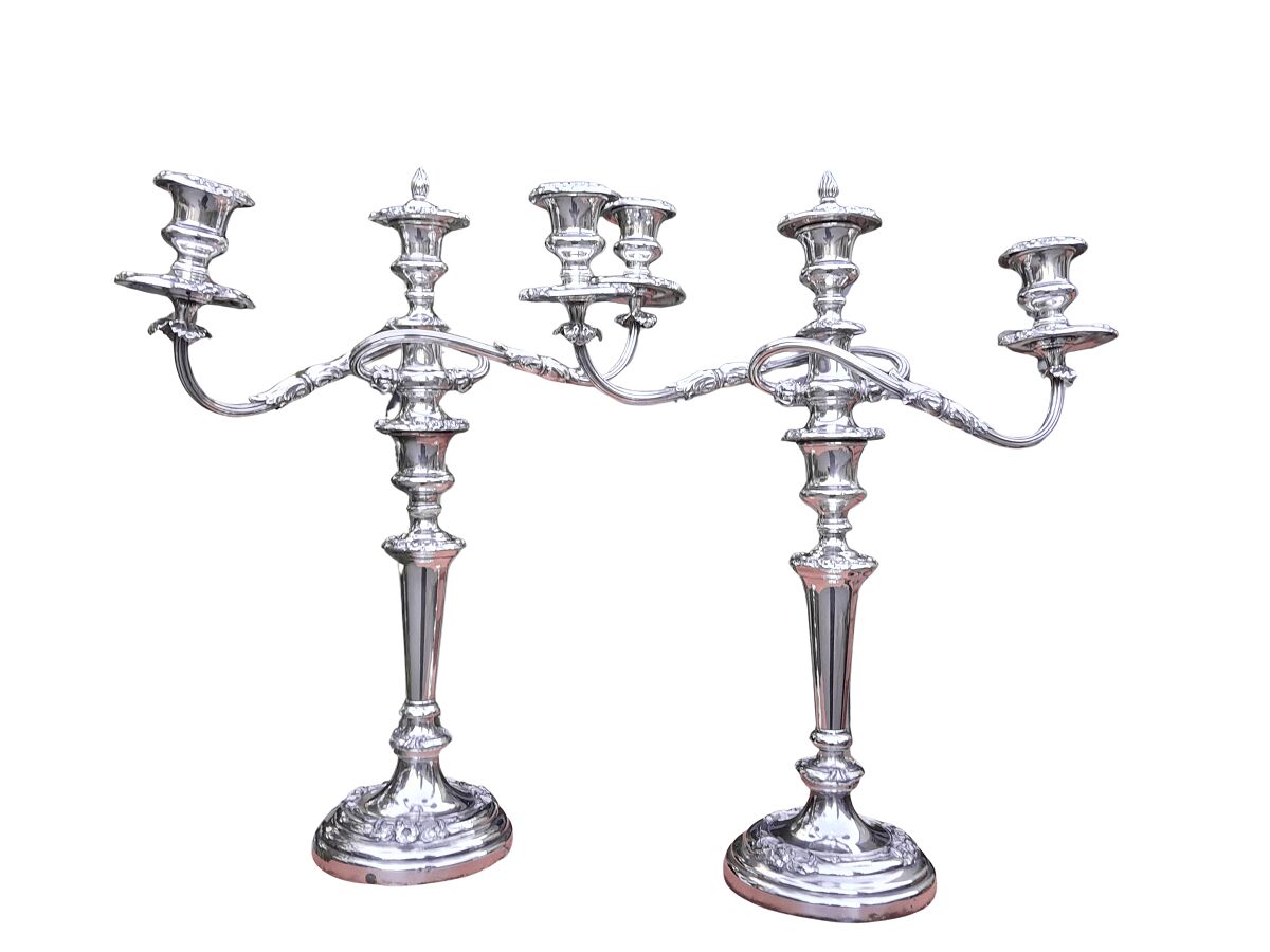 A 20th Century Pair Of Silver Plate Candelabra