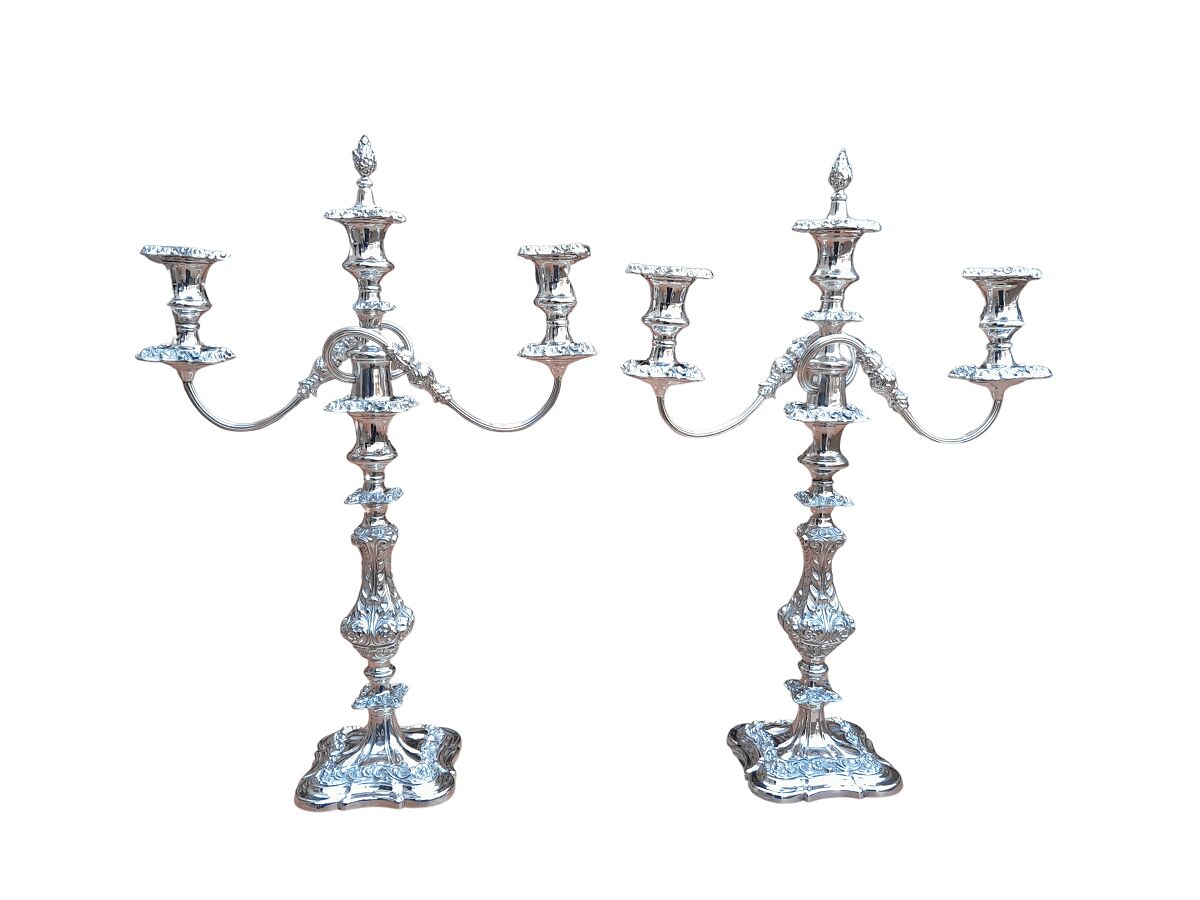 A 20TH Century Pair Of Silver-Plate Candelabras Of Large Proportions