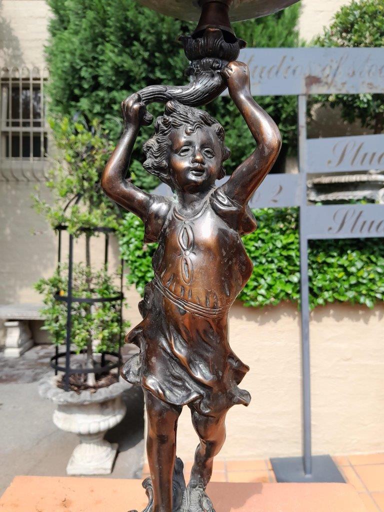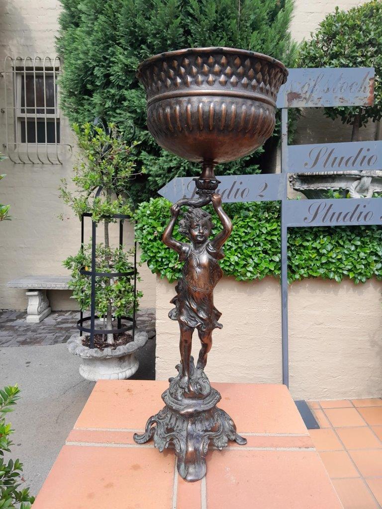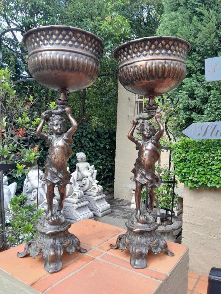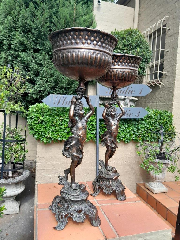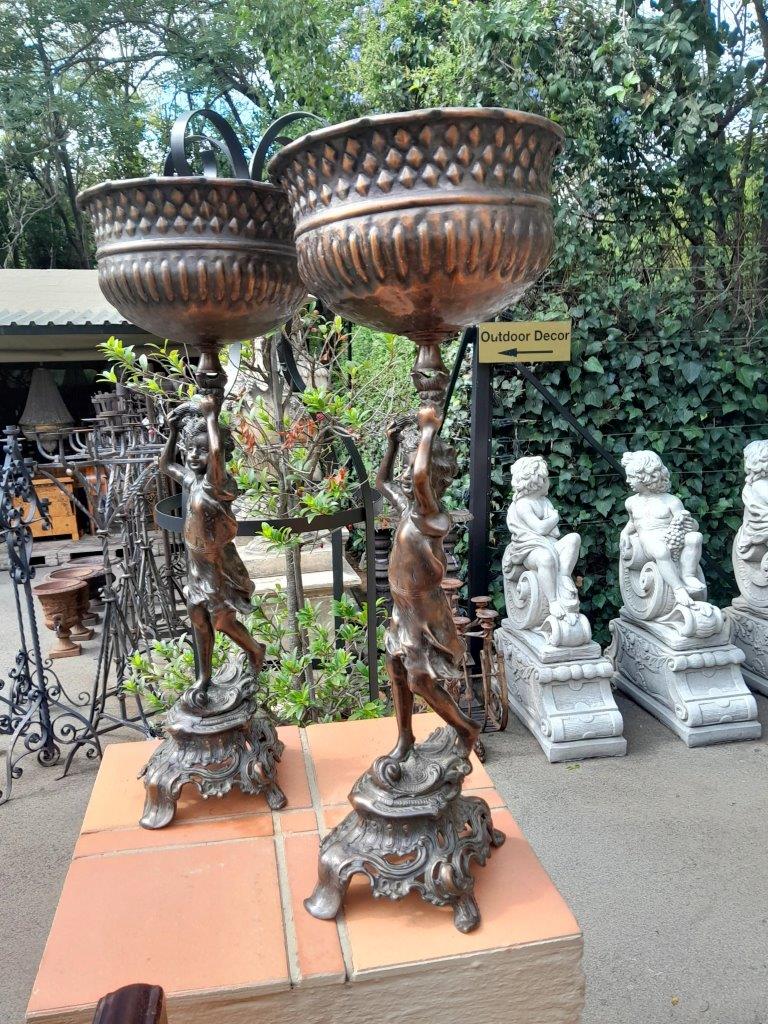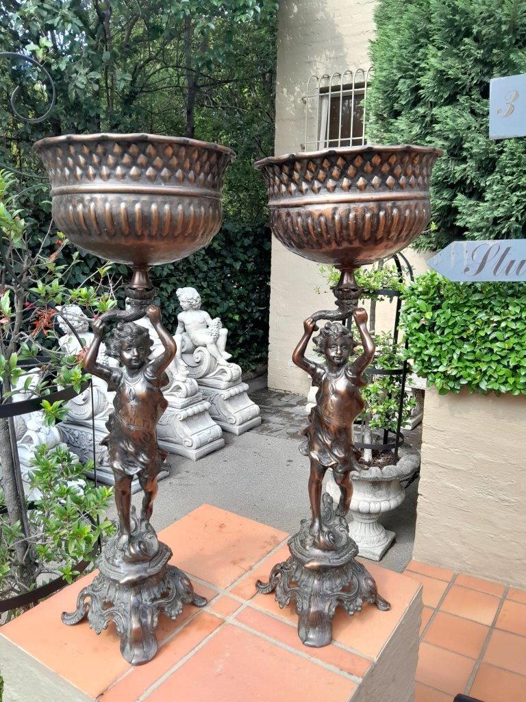 A 20th Century Pair of Silver Plate Figurines Holding Pots