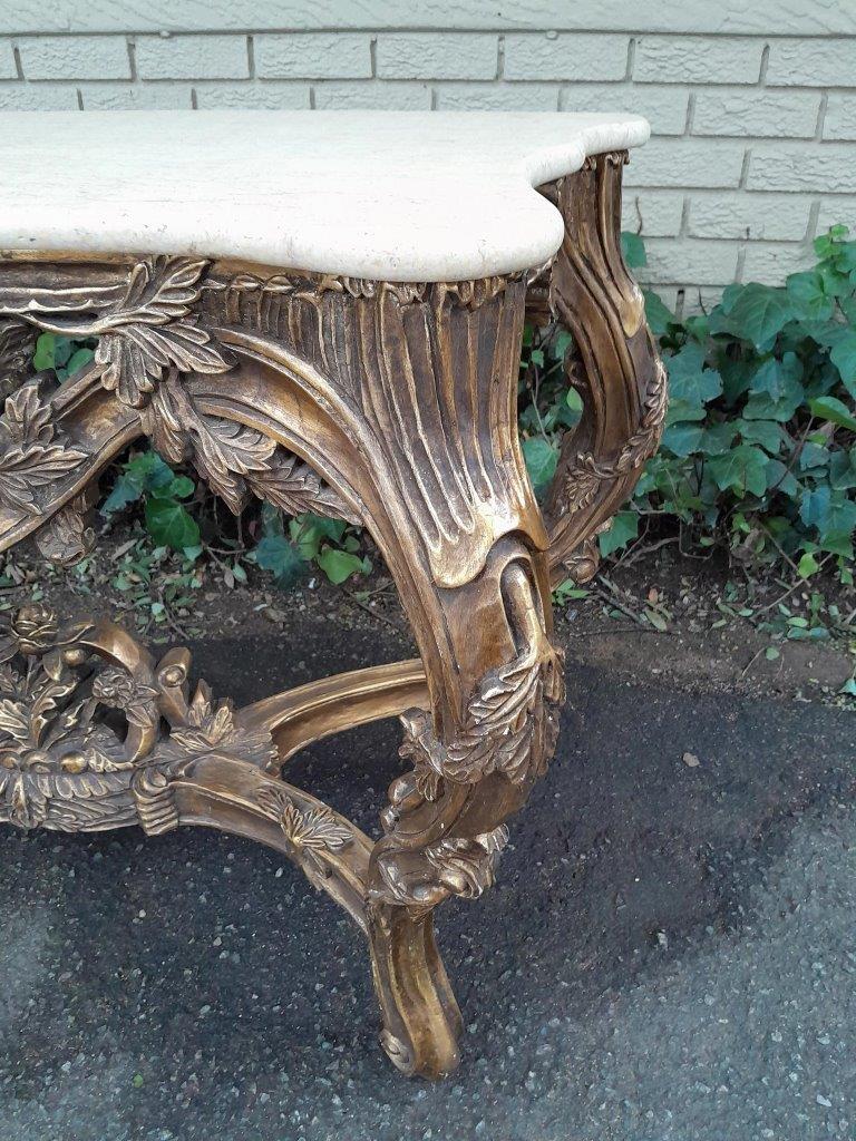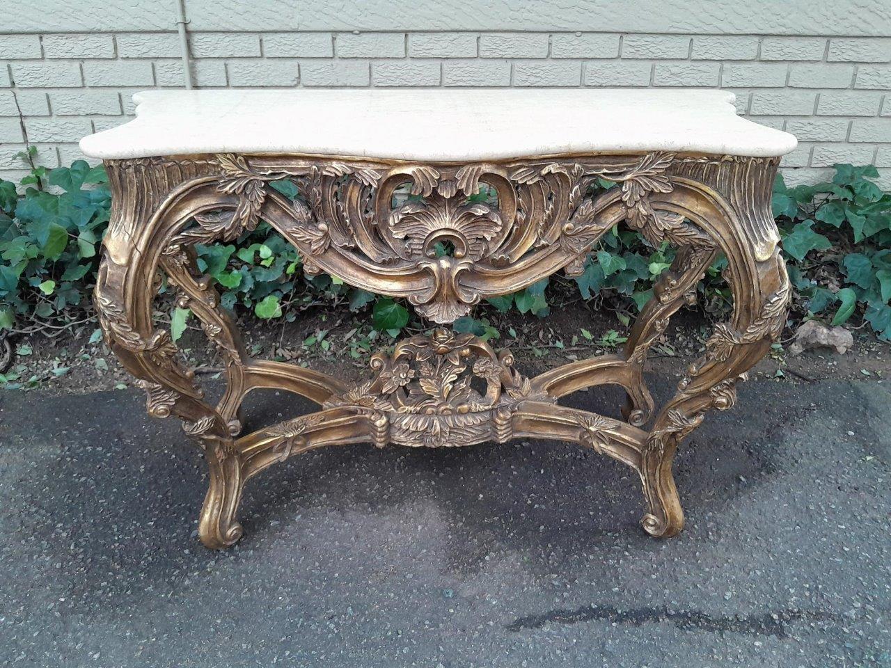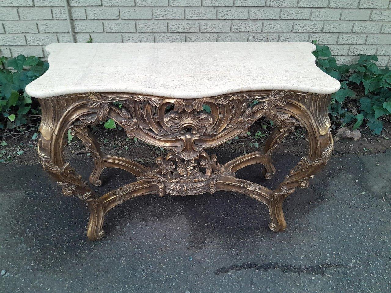 A 20th Century Rococo-Style Giltwood Console Table With Cream Marble