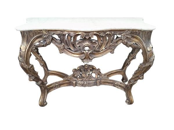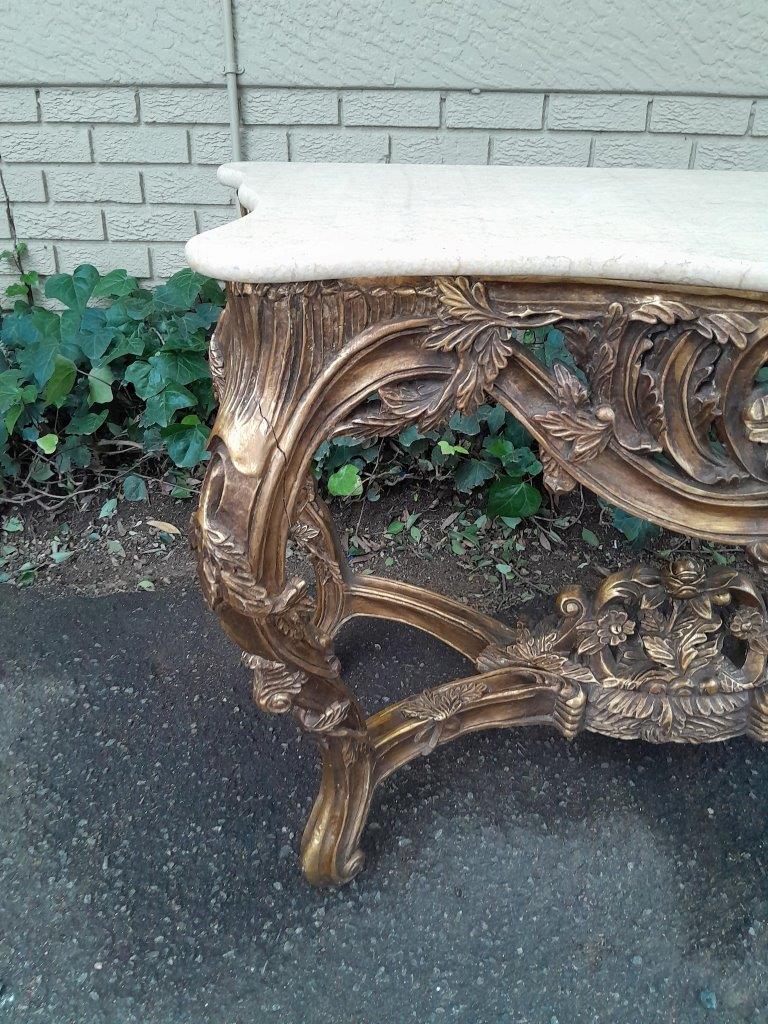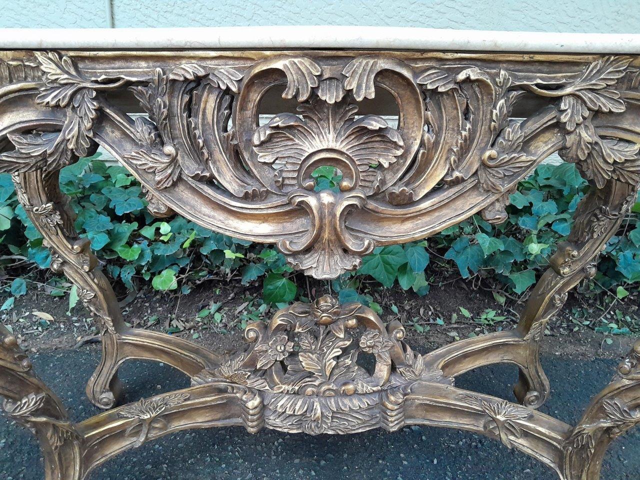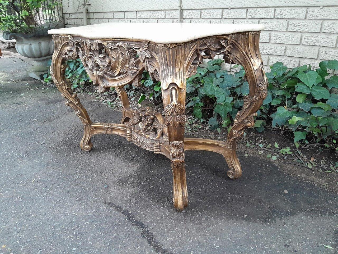 A 20th Century Rococo-Style Giltwood Console Table With Cream Marble