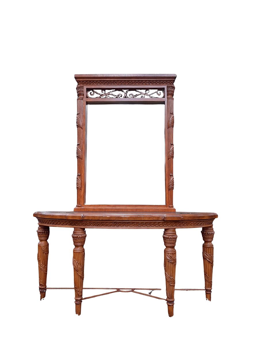 A 20th Century Set of Carved Wooden Console Table with Matching Mirror