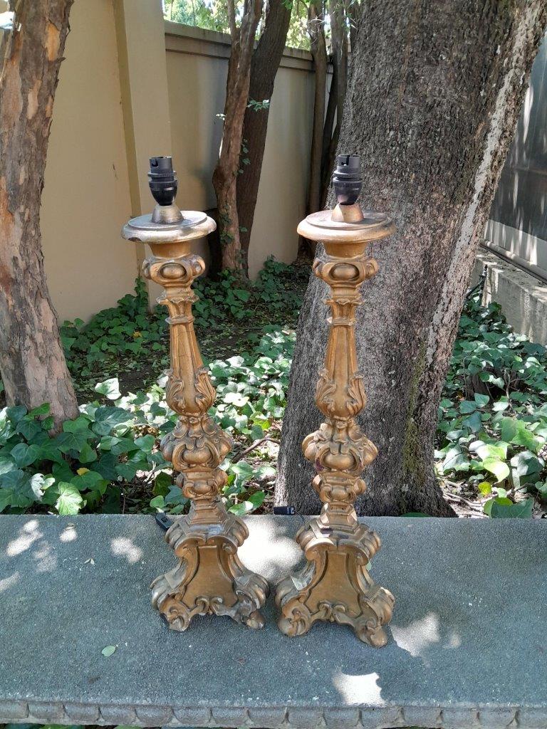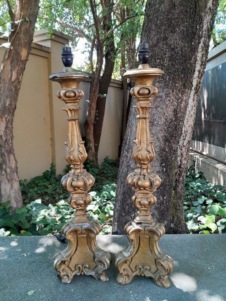 A 20th Century-Style Gilt Painted Pair Of Tall Lamp  Bases