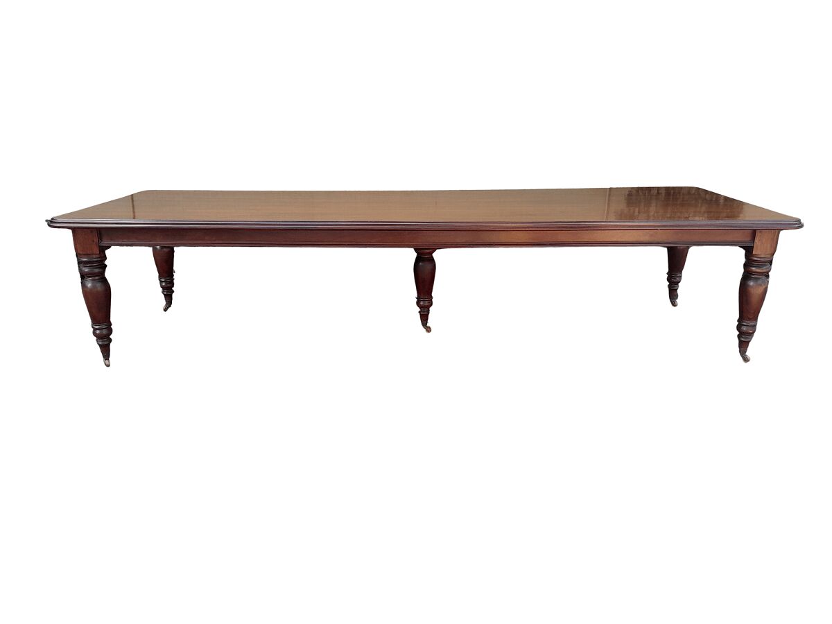 A 20th Century Victorian Style Mahogany Dining Table of Large Proportions on Castors with 5 legs (14 – 16 Seater)