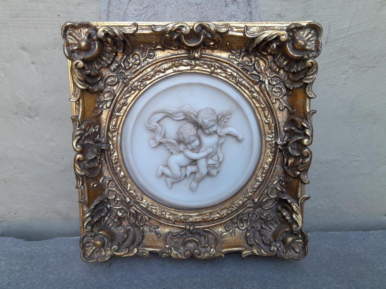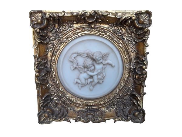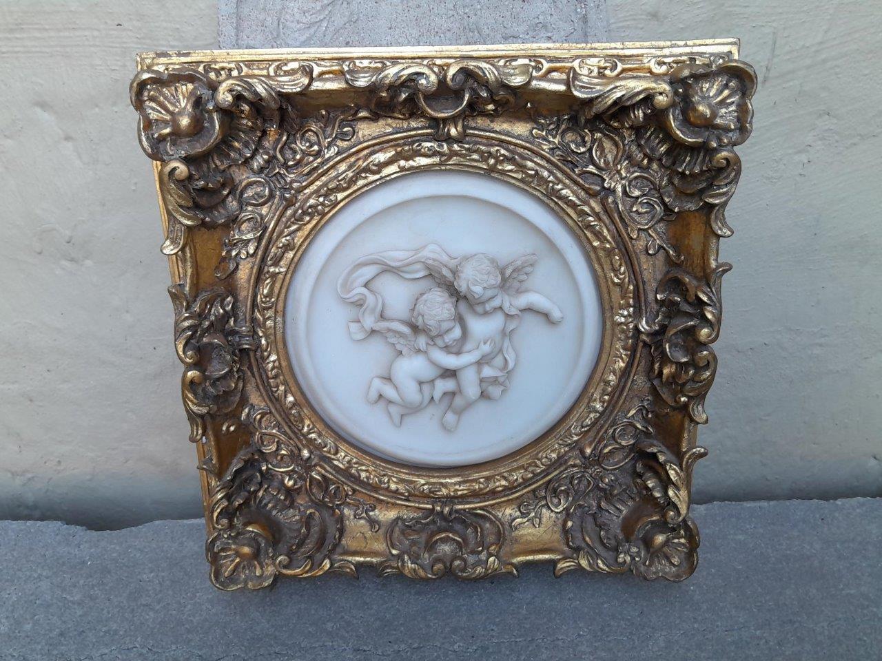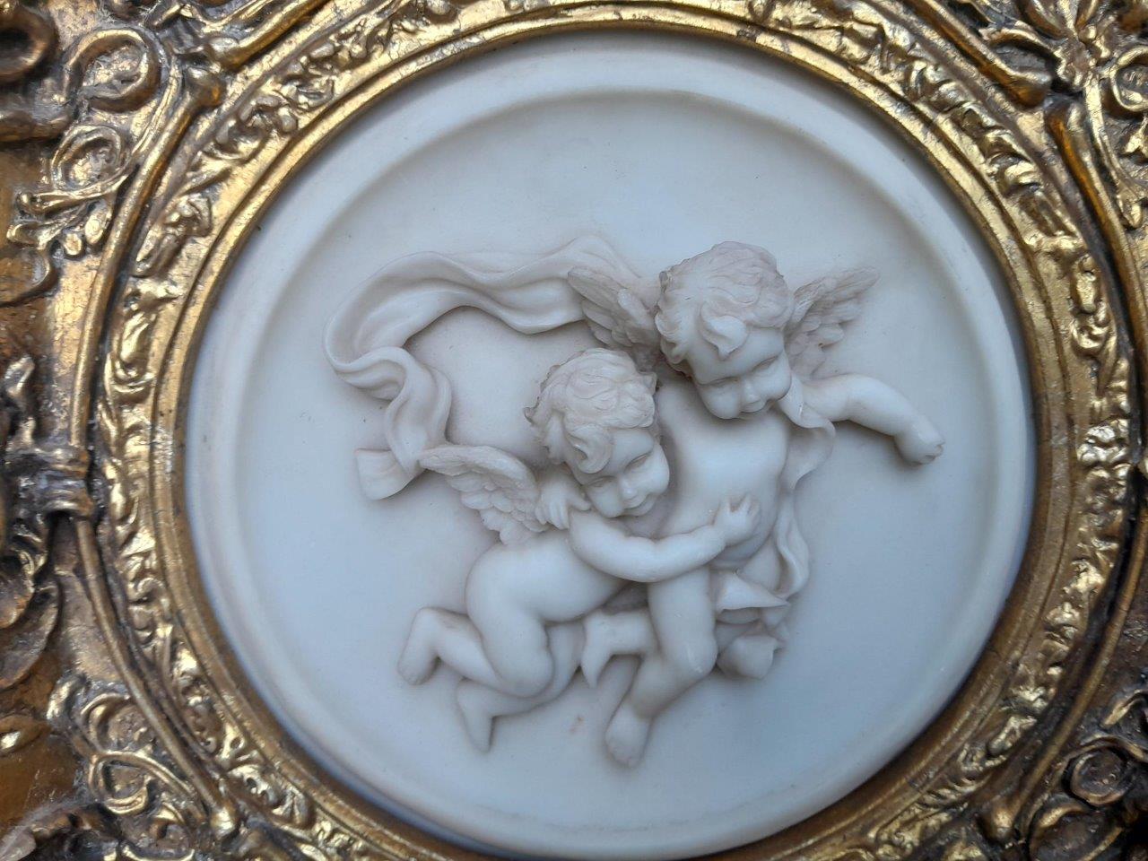 A 20th Century Victorian Style Ornate Giltwood Frame With Porcelain Style Plaque