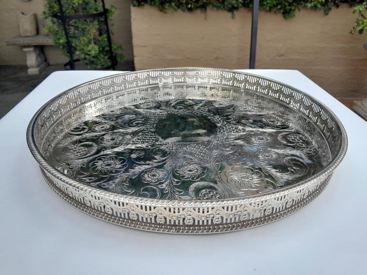 A 20TH Century Viners Of Sheffield Silver-Plate Round Tray With Pierced Gallery