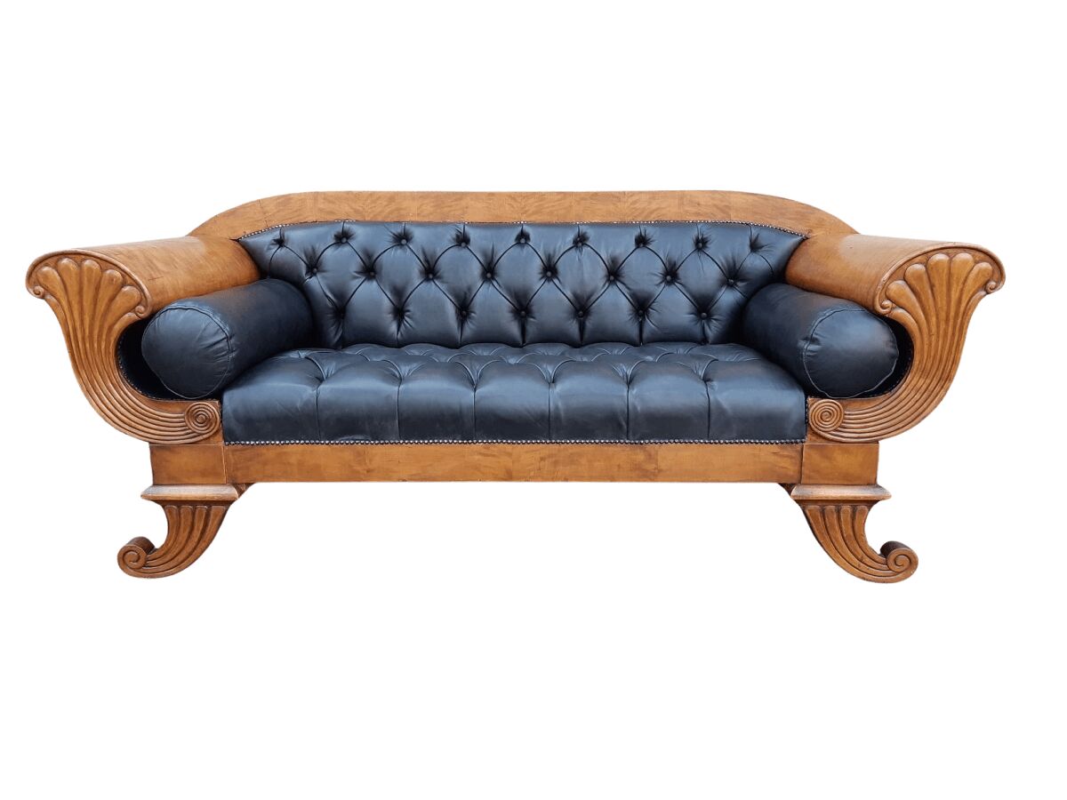 A Biedermeier Settee Covered in Leather and Deep Buttoned Circa Early 20th Century