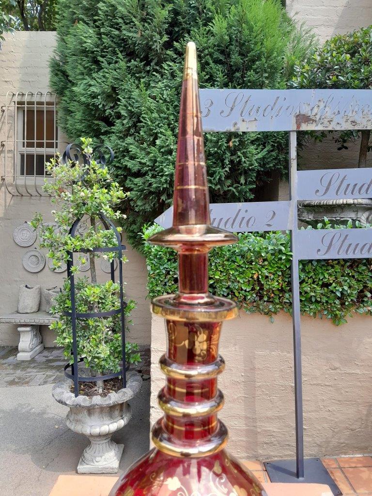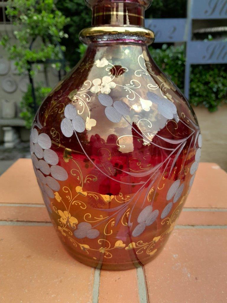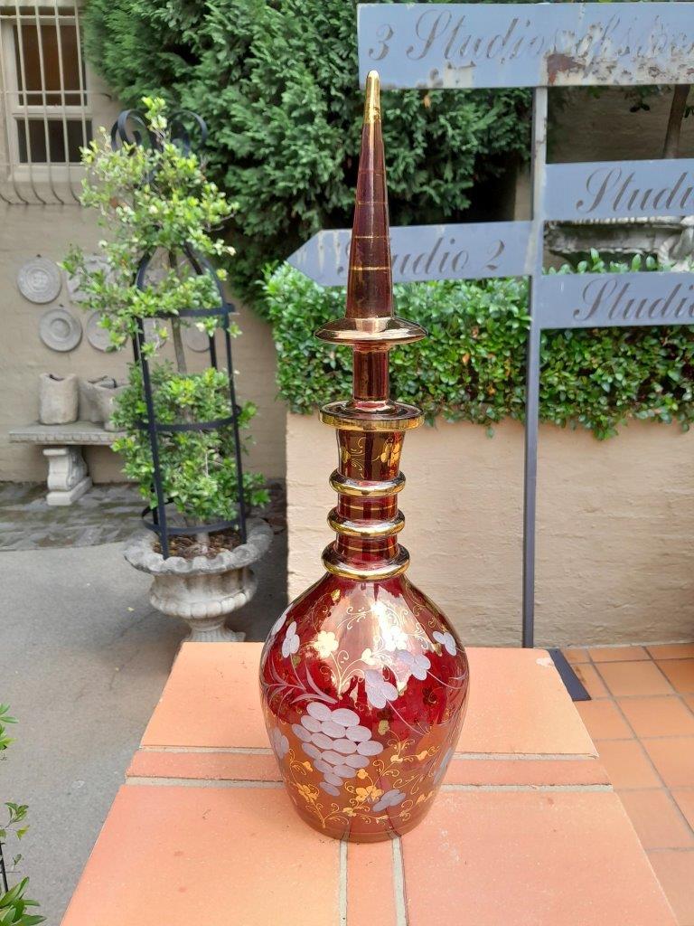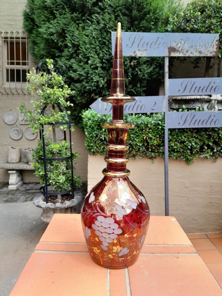 A Bohemian Rub- Red Hand-Painted And With Gold Detail Decanter