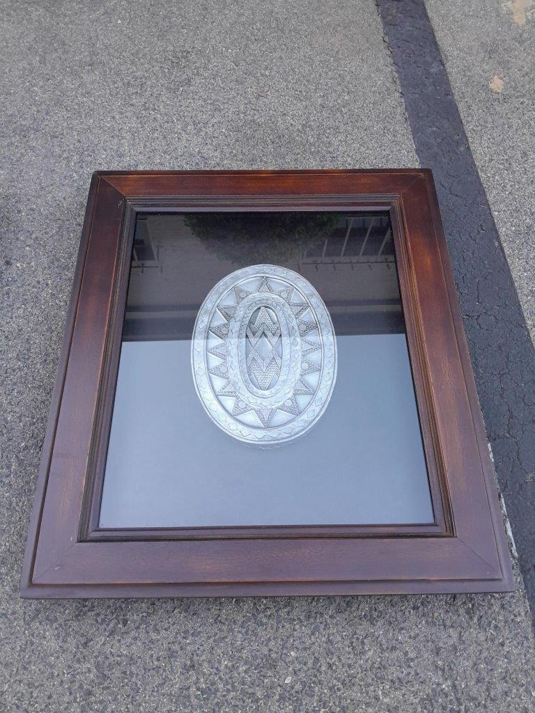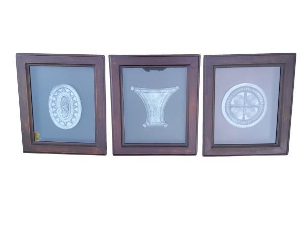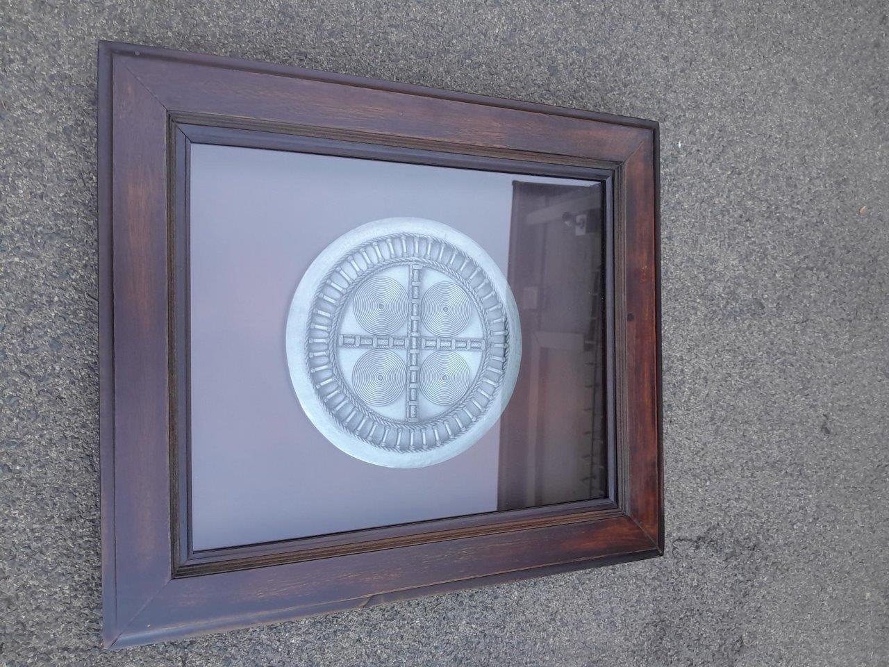 A Boxed Wooden Framed Set Of Abstract Pewter Plaques