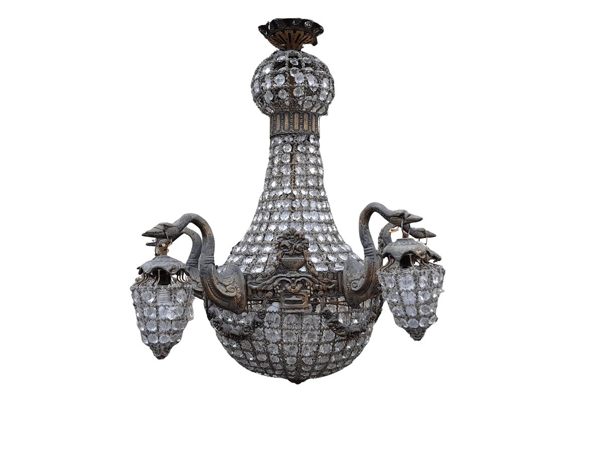 A Brass Gilt & Aged Monumental Empire French Style Chandelier