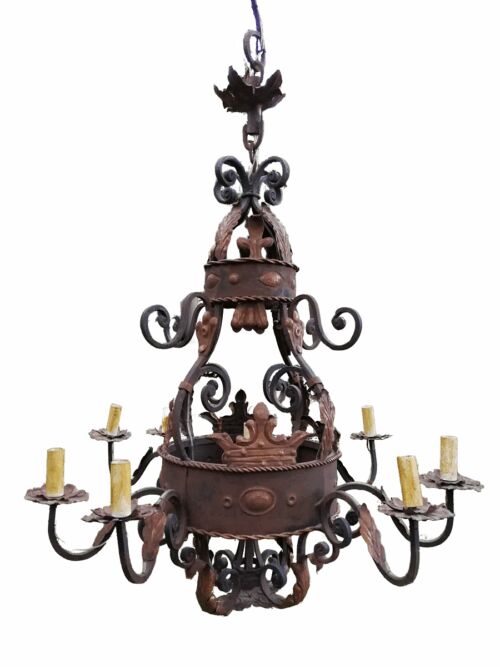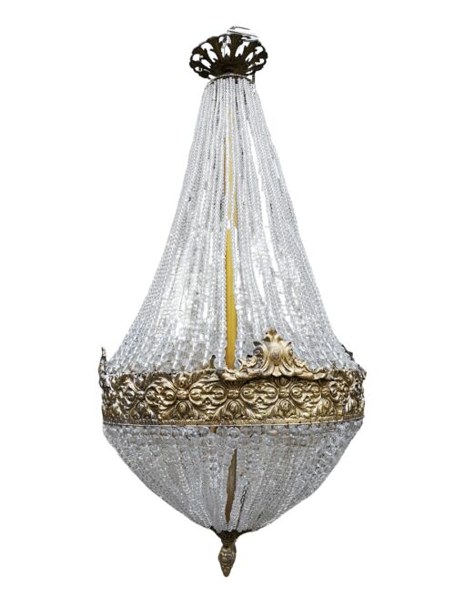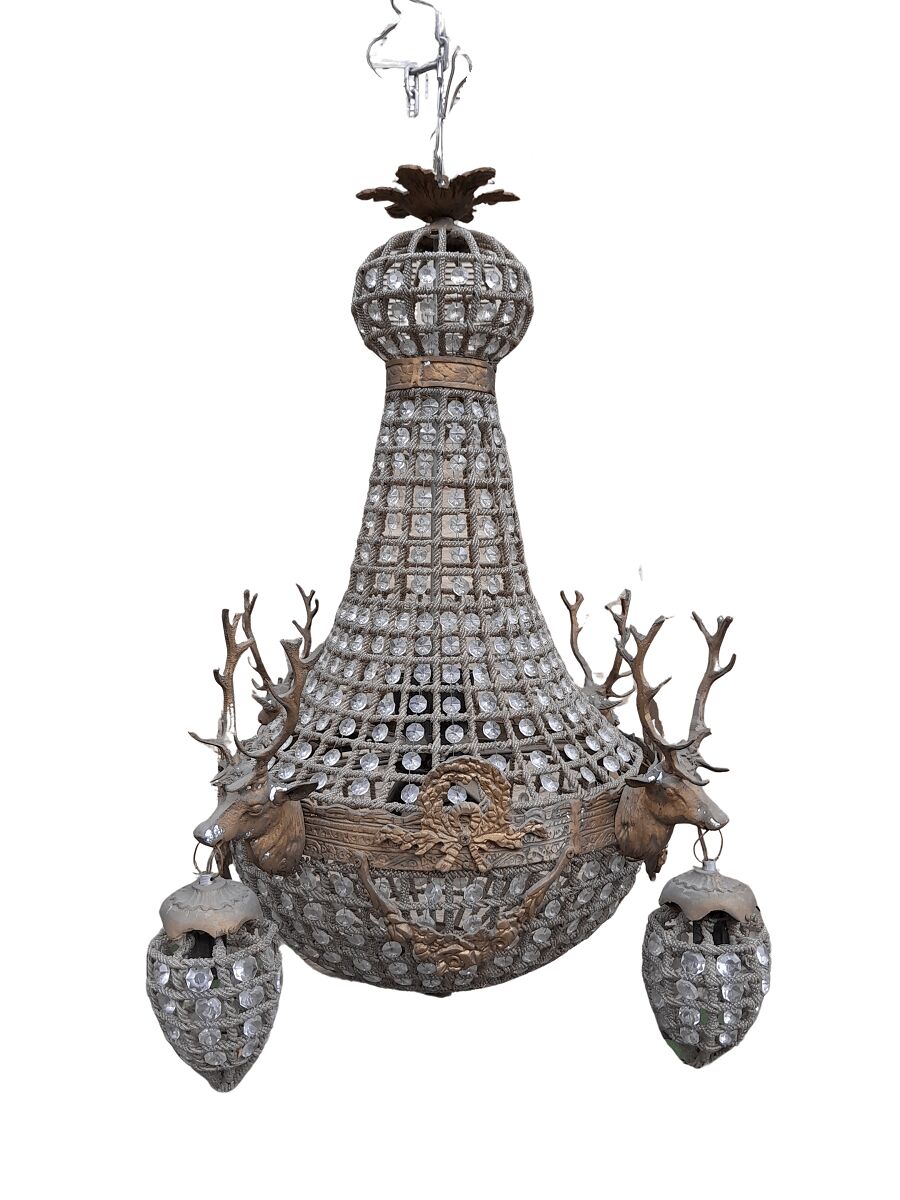 A Brass Gilt & Aged Monumental Empire French Style Chandelier with Deer Head Figures