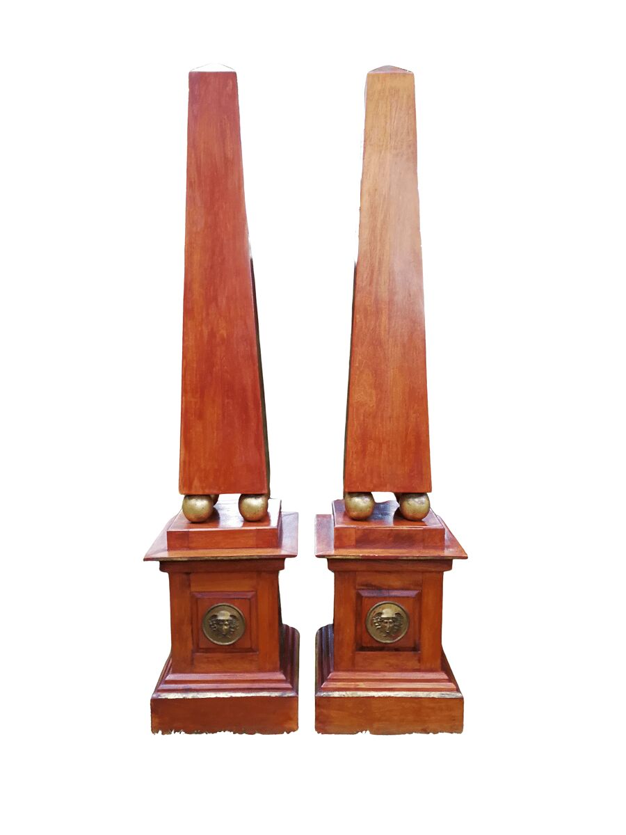 A Circa 1920 Pair Of Tall Mahogany Obelisks With Brass Detail