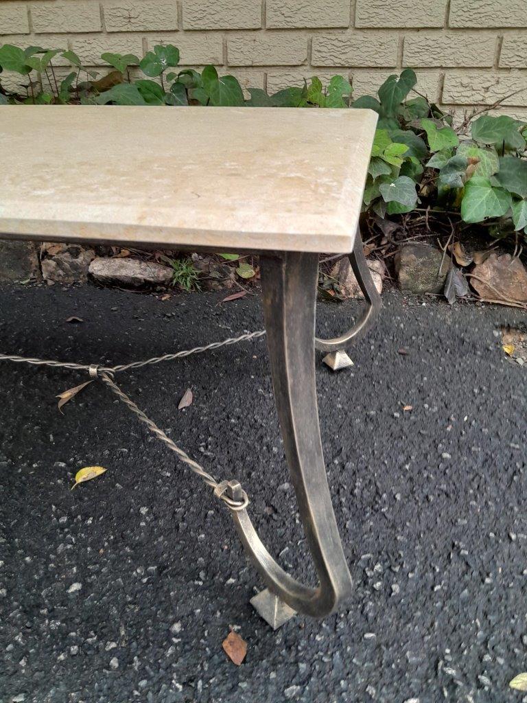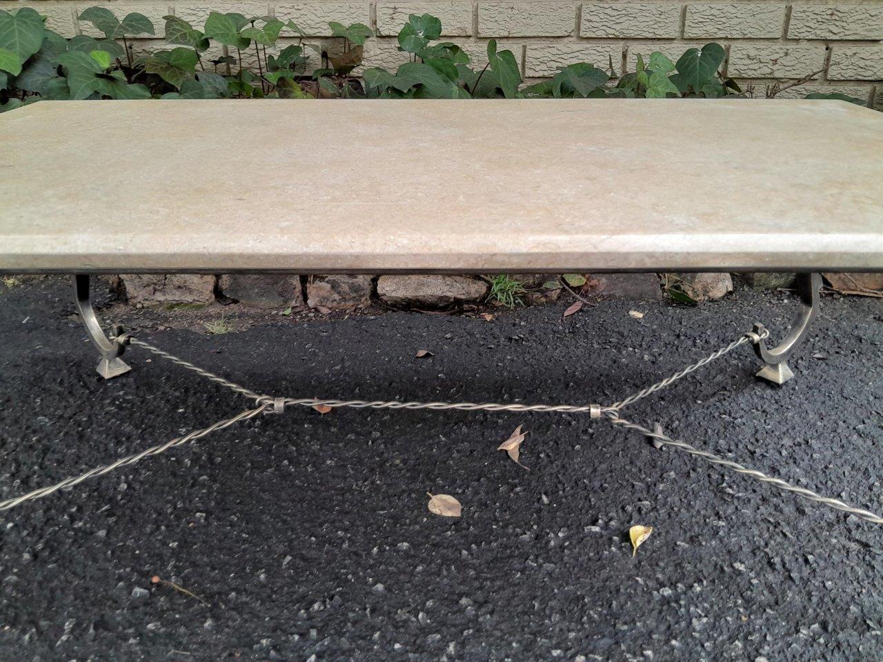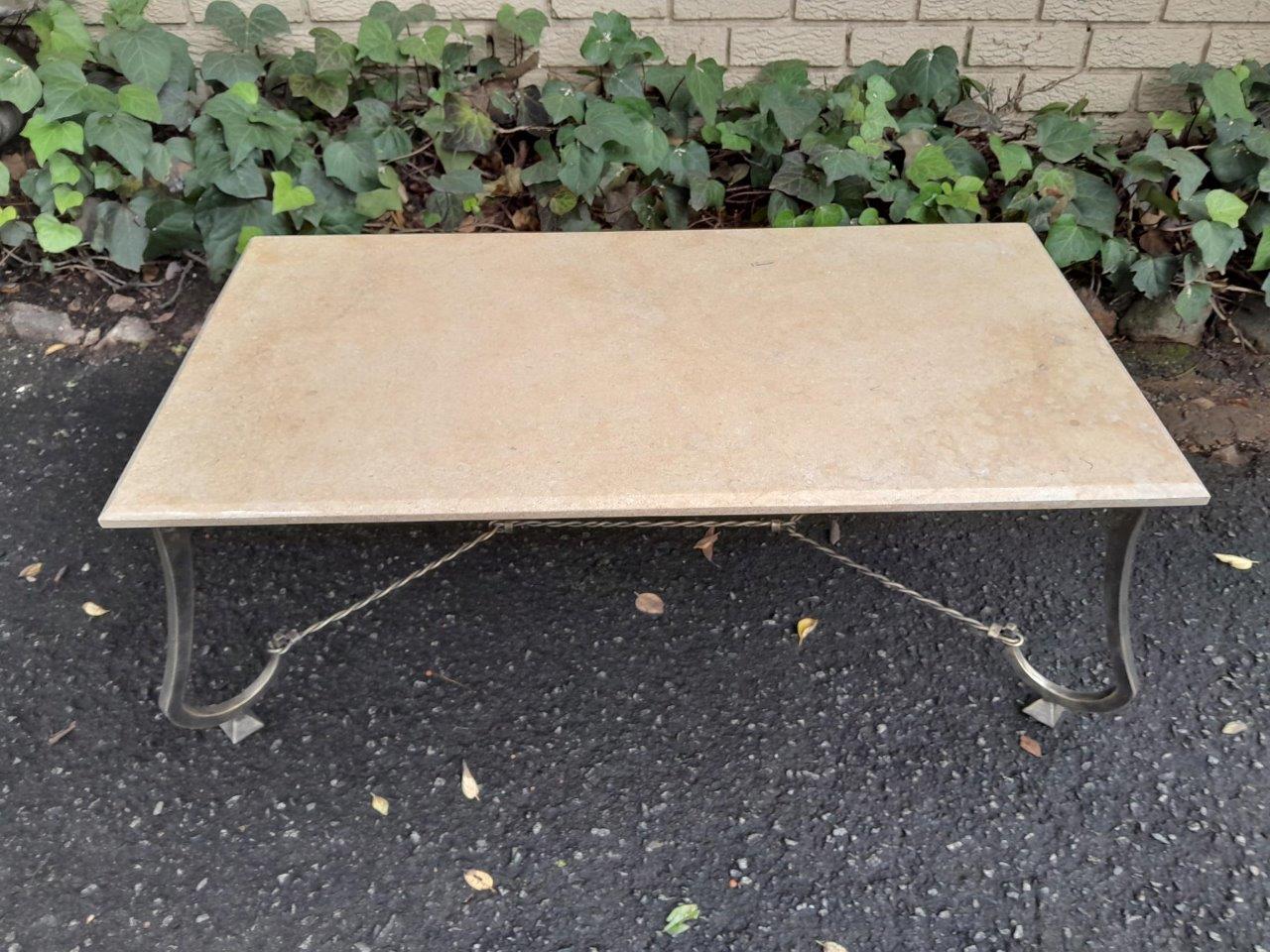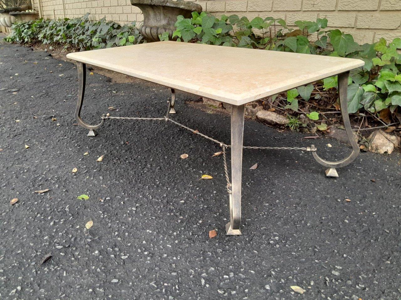 A Custom-Made For The Crown Collection Wrought Iron Coffee Table In An Antique Gold Finish With Marble Top