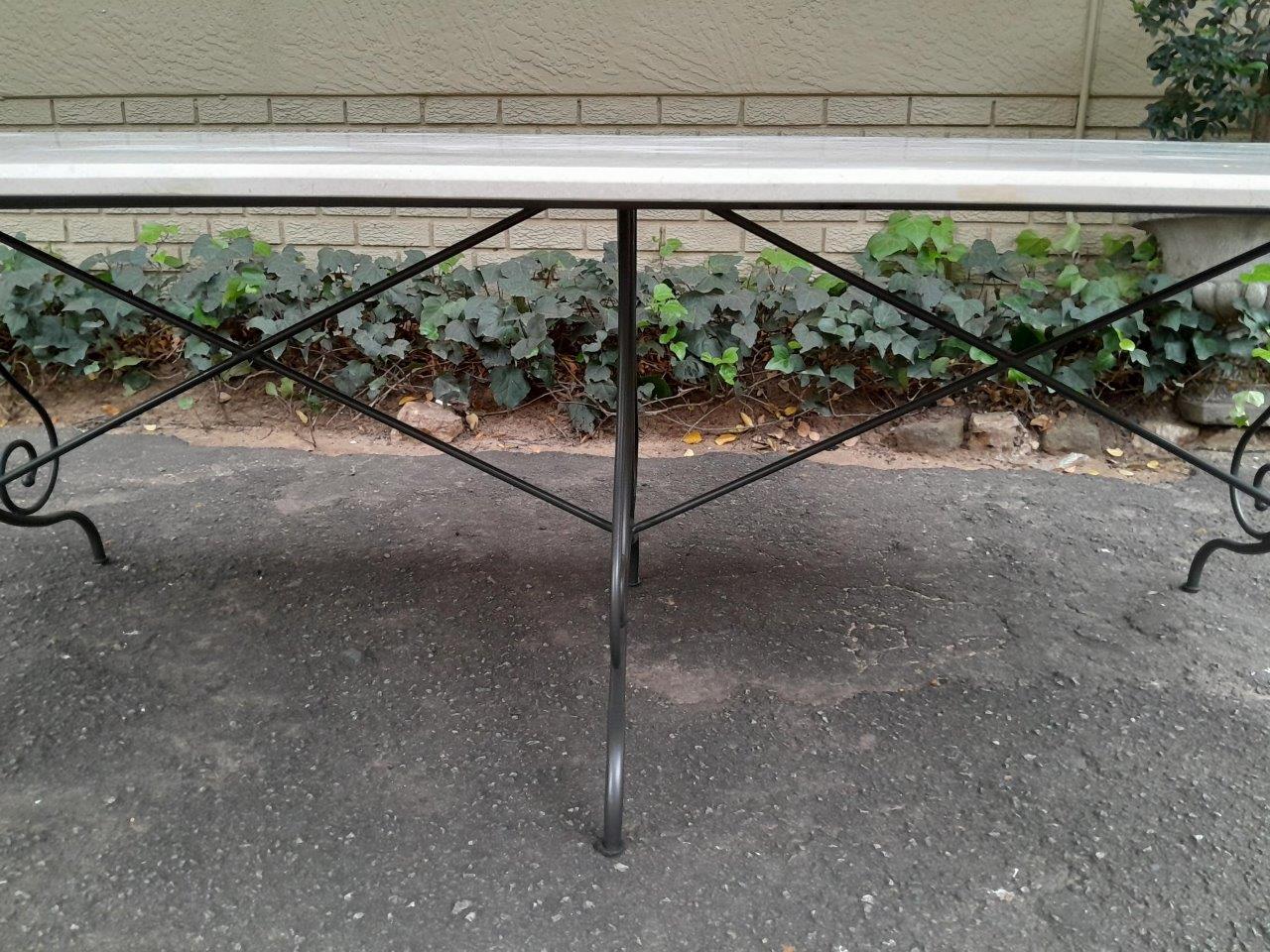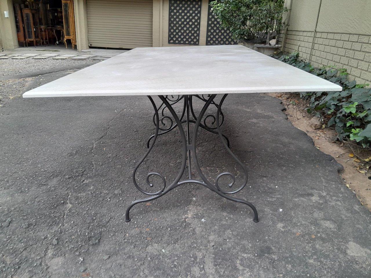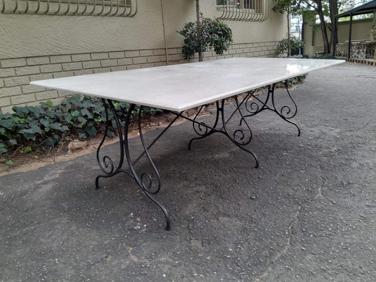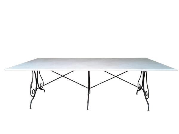 A Custom-Made French Style And Galvanised Wrought Iron Table Base With Cream Marble Top