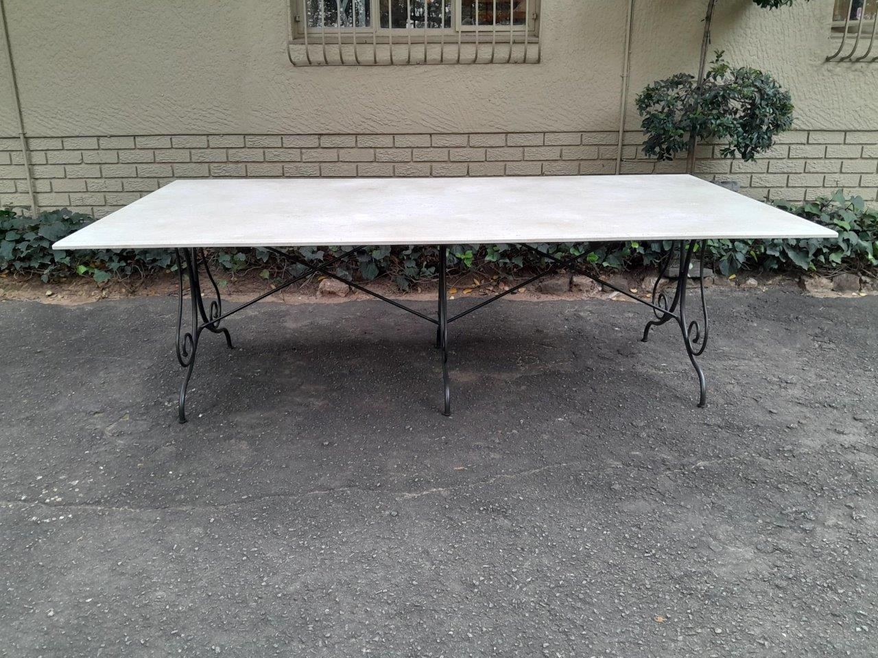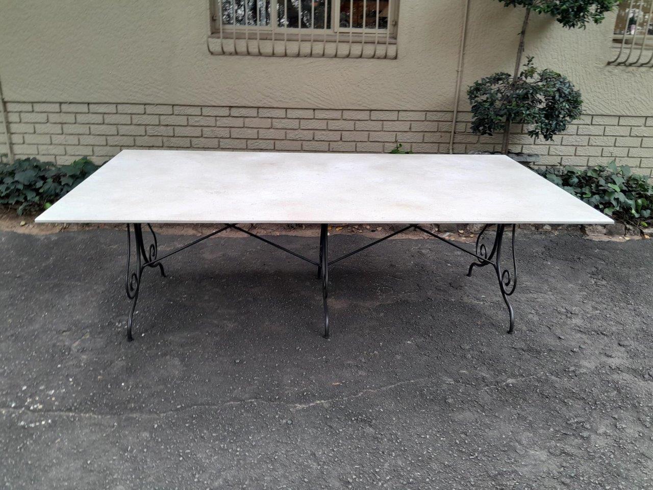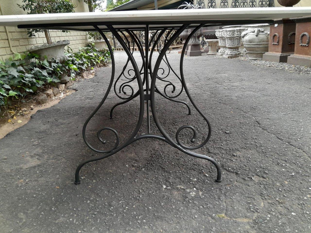 A Custom-Made French Style And Galvanised Wrought Iron Table Base With Cream Marble Top