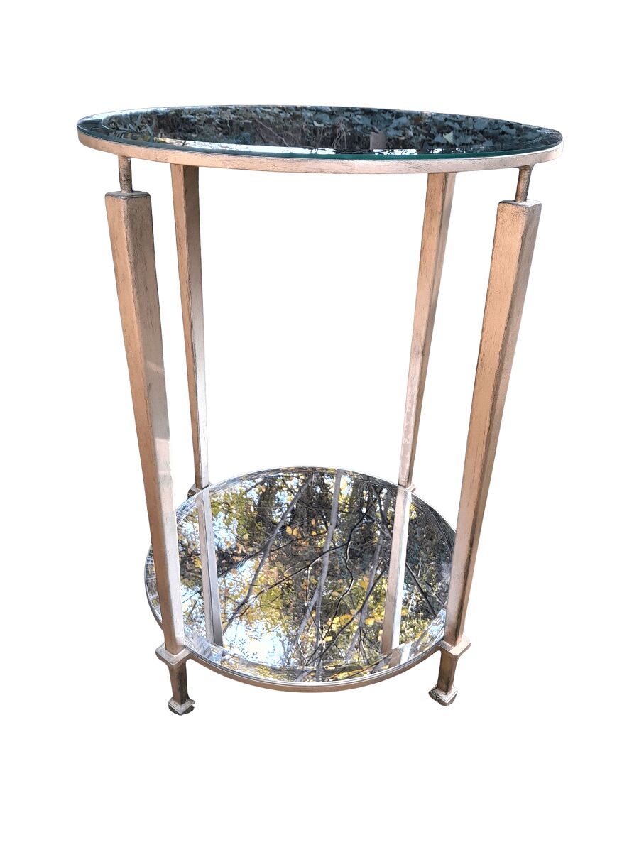 A Custom-made Gilt Metal / Wrought Iron Circulate Table / Side Table / Bedside Table with Two Bevelled Mirrors on Top and Bottom